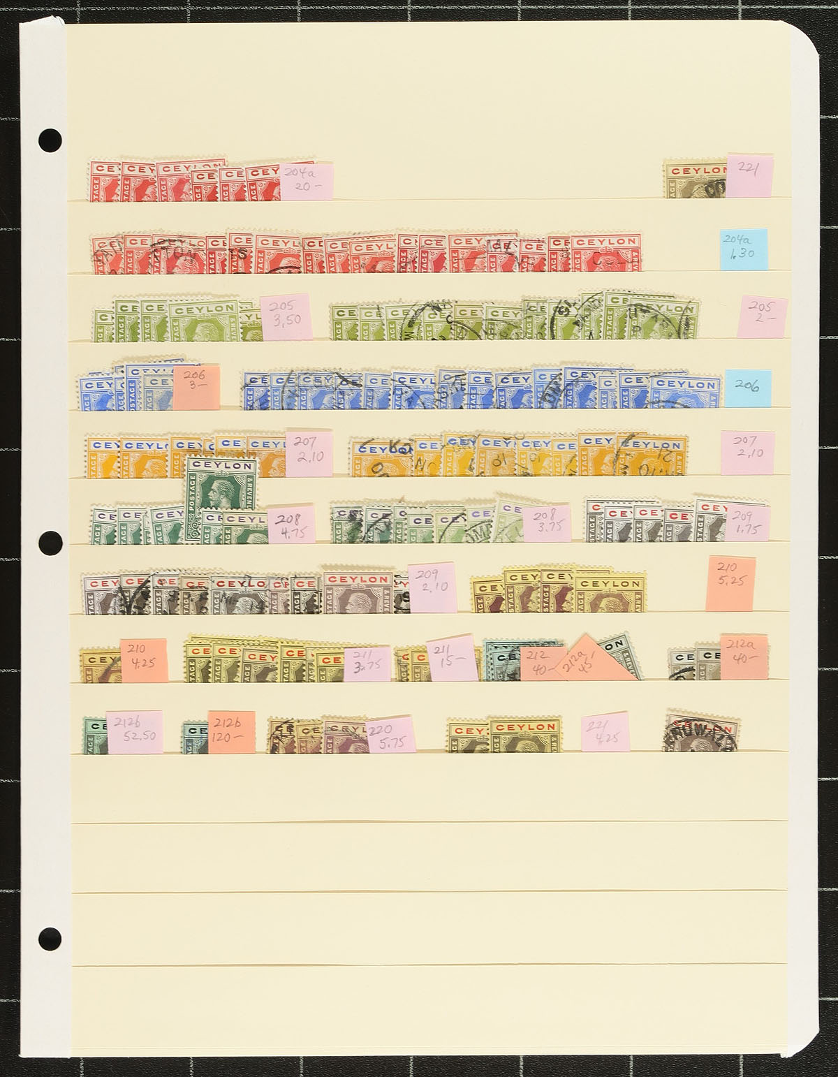 Part B: A mint and used accumulation of King Edward VII and King George V issues (to 1914) on five manilla stockpages. Both "Sideface" and "Keyplate" designs with values to 2R25. Generally, up to a dozen of a type. Better singles includes #194 (mint and used), #204a (x6 mint), #212 (3x used), #212a (2x used), #212b (mint and used). Overall the condition is quite good, with only the occasional minor fault noted, and some cancel potential may be lurking within. Most items annotated with Scott numbers and (older) catalogue values. This is a collector’s duplicates, not a dealer’s stock, and has never been seen by the collecting community. Estimate =
