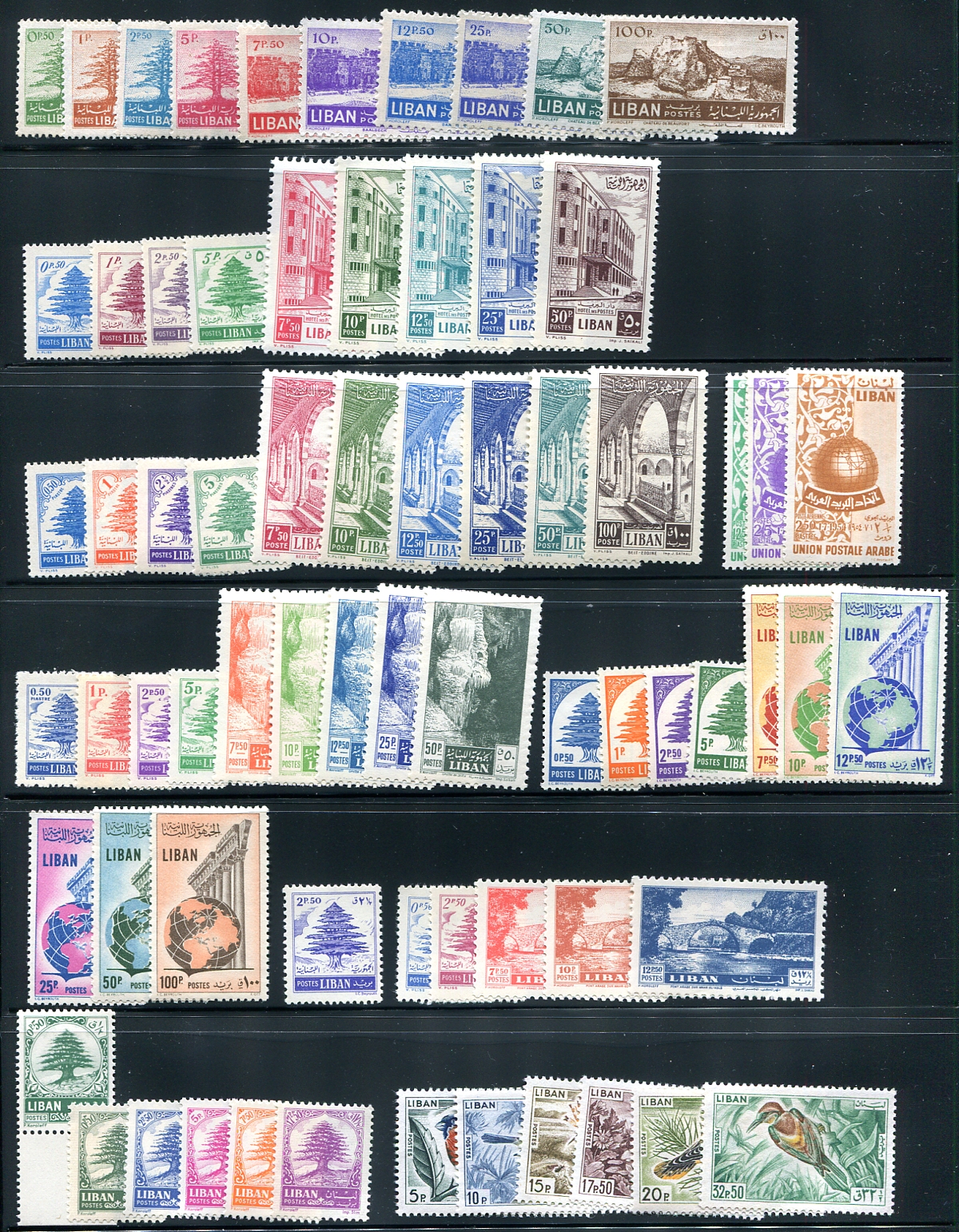 In the early 195’0s, Lebanon re-issued its definitive sets with the "Cedar" theme almost every year (and most of them are here. After 1957 to the 1990s this lot is represented by a scattering of better singles and sets, noting the Birds set of 1965 and the 1993 souvenir sheet for the 50th anniversary of independence. Two pages filled with an attractive mint (mostly) Hinged grouping. 2024 Scott US$577.65 =