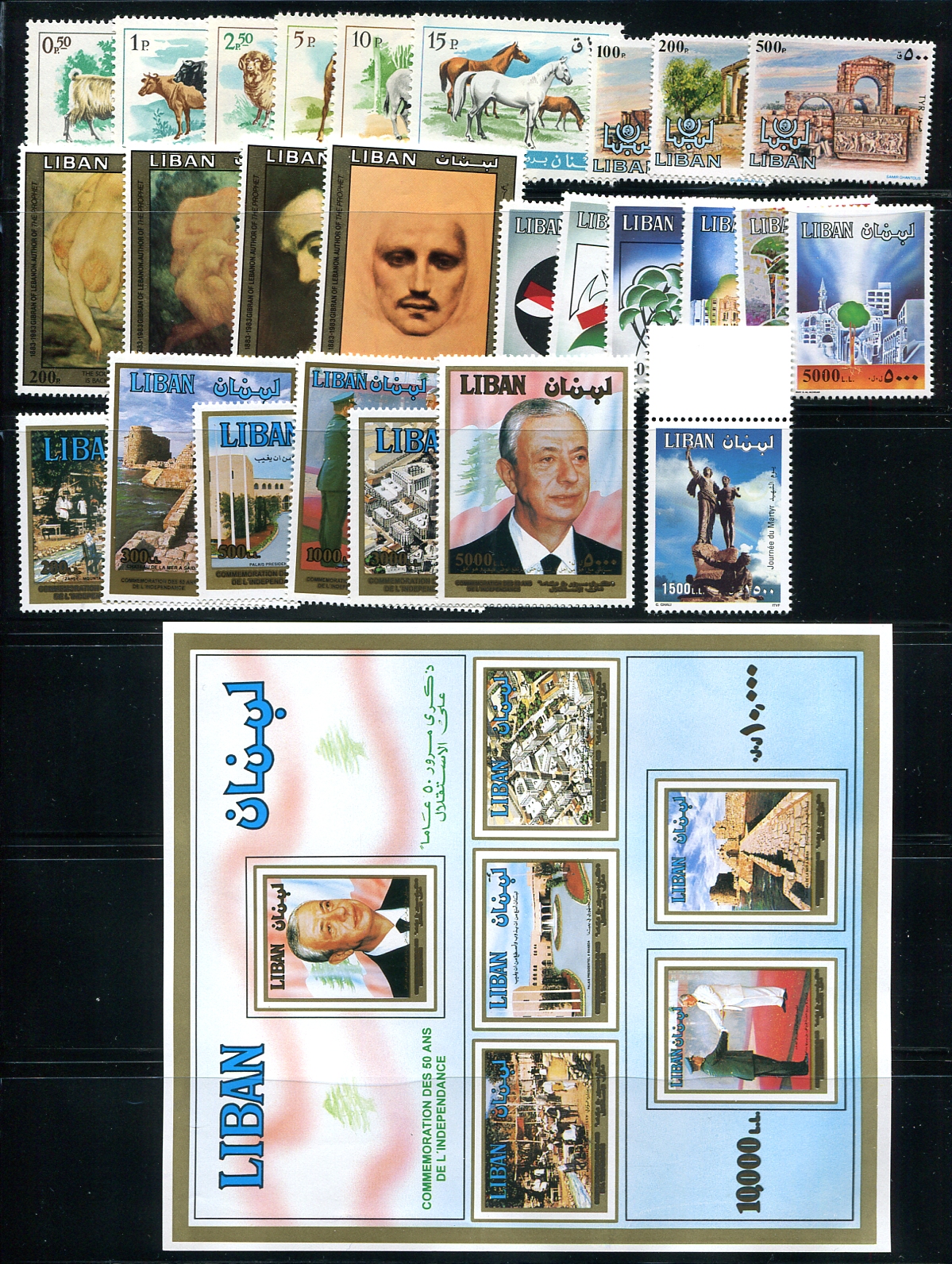 In the early 195’0s, Lebanon re-issued its definitive sets with the "Cedar" theme almost every year (and most of them are here. After 1957 to the 1990s this lot is represented by a scattering of better singles and sets, noting the Birds set of 1965 and the 1993 souvenir sheet for the 50th anniversary of independence. Two pages filled with an attractive mint (mostly) Hinged grouping. 2024 Scott US$577.65 =