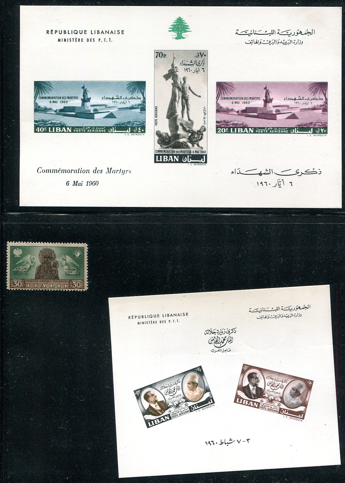 Up to 1961 Lebanon supplemented its airmail issues with souvenir sheets or cards, which make for eye-catching additions to your collection. Sometimes individually listed, sometimes as footnotes (with pricing) in Scott. These dozen sheetlets are never hinged except (C149a - couple bits of adhesion on the back) and C290a (signs of hinging). These oversized items are often subject to bending or damage, but these are in far above average condition. 2024 Scott US$453.10 =