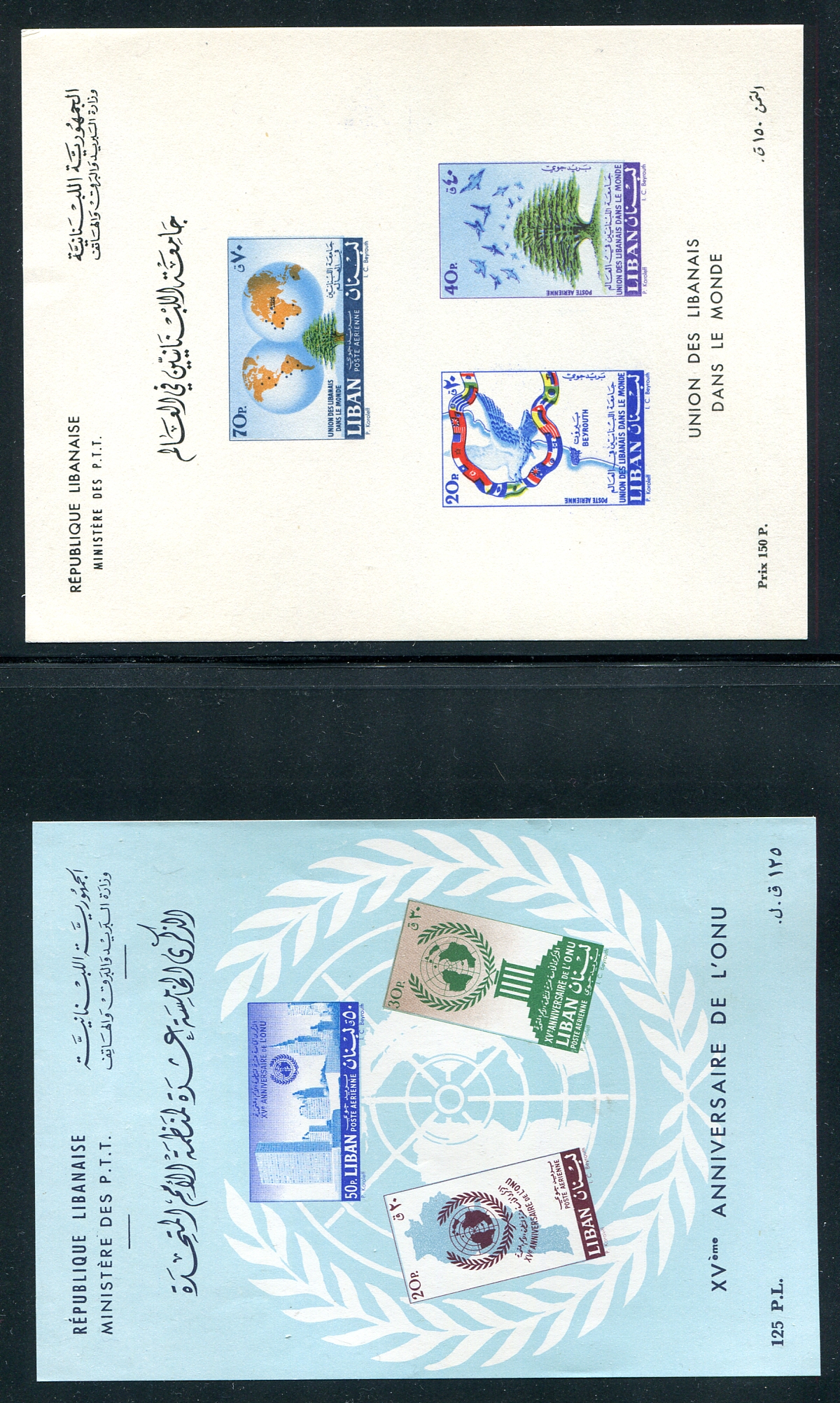 Up to 1961 Lebanon supplemented its airmail issues with souvenir sheets or cards, which make for eye-catching additions to your collection. Sometimes individually listed, sometimes as footnotes (with pricing) in Scott. These dozen sheetlets are never hinged except (C149a - couple bits of adhesion on the back) and C290a (signs of hinging). These oversized items are often subject to bending or damage, but these are in far above average condition. 2024 Scott US$453.10 =
