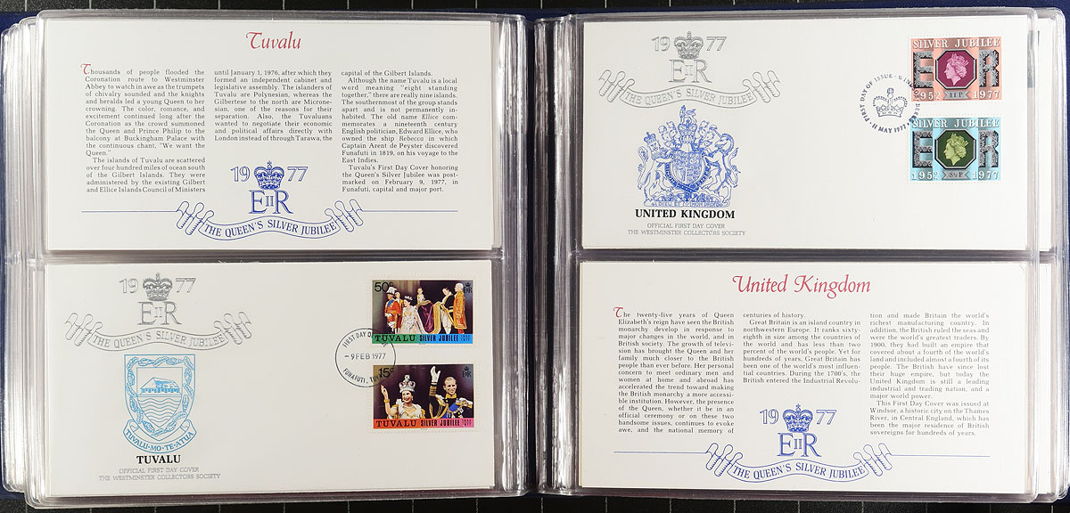 First Day Cover assortment, mostly 1960’s-1990’s. Lots of Fleetwood cachets including some Canada, Great Britain (larger covers 1988-1989), 1977 QEII Westminster Collector’s society (if you scoff at these, the album is great for re-use). There is four "Uni-Safe" FDC albums (albums alone retail over $100.00), two with German Democratic Republic (many look to be postally used FDCs), one Canada/United Nations and the last with an assortment of worldwide. There are a couple of other issues in folders, and a good handful of loose FDCs (noted worldwide covers honouring the 1980 Moscow Olympics). A couple might be regular mail or first flight covers, but this is a small percentage of the approximately 500 items here. Estimate =