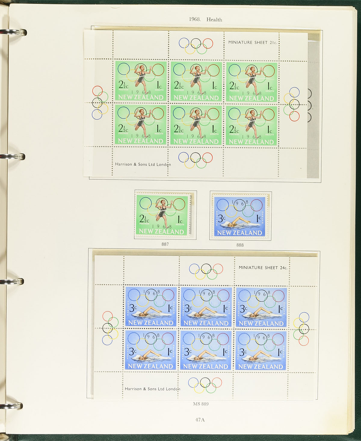 Two Stanley Gibbons album collection with the remnants of an estate. Some has been removed, but there is still lots of meat on these bones. Noted the 1874 issued 5/- high value (#60 - cat $500.00), a mint block of the 1d "Victoria Land" (#131D - cat $300.00), the overprint on the QEII "Stars" definitive (#320 - cat $170.00), plus the pictorial issues in both sterling and decimal currency. The "back of the book" is represented with lots of "Health" souvenir sheets and airmails #C1-C5. And much more, both mint and used! Includes cancels, fiscals, blocks, minor varieties, etc. The pages go up to 1989, but there are no stamps after 1979. Significant value here. Estimate =