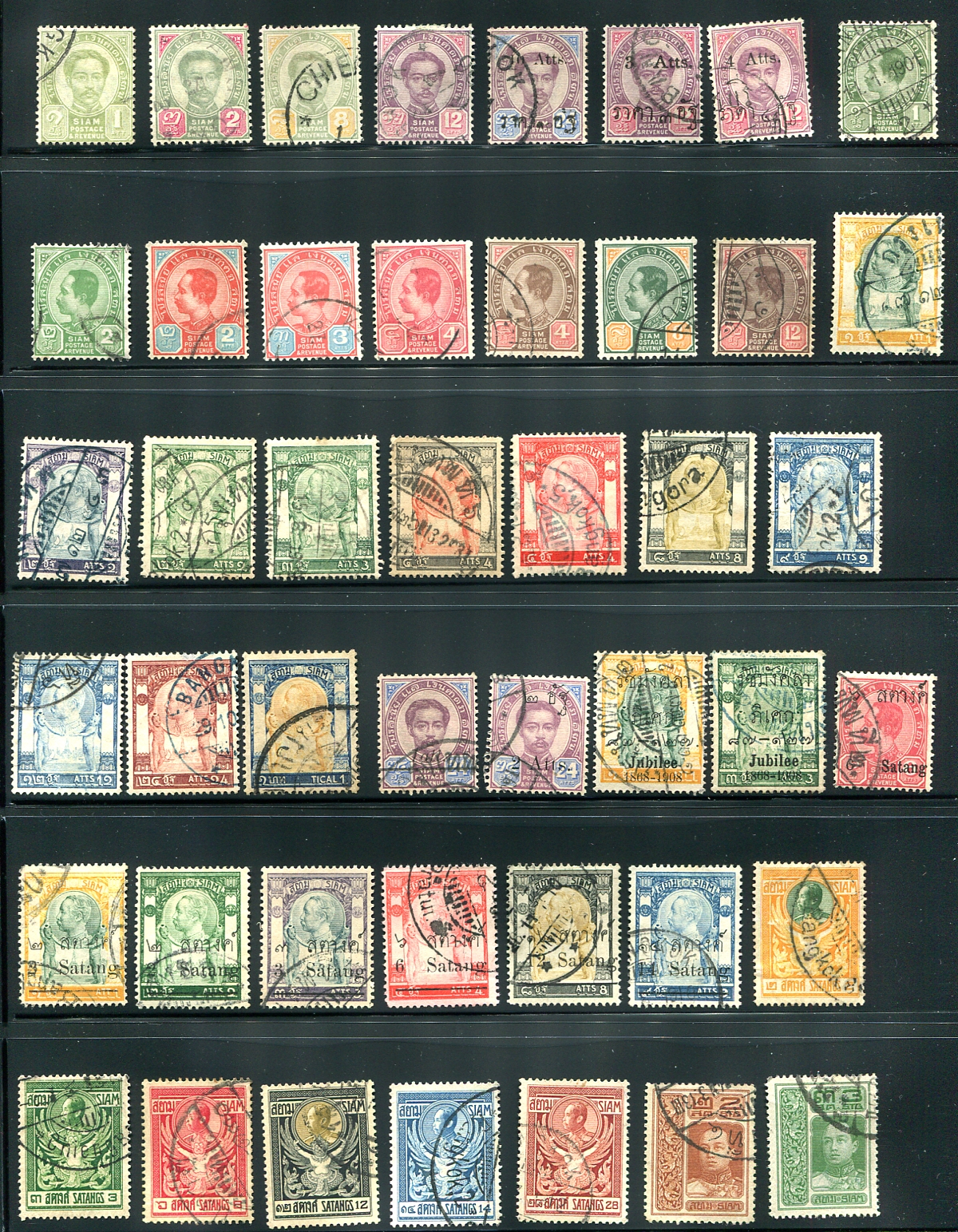 Three pages of assorted sets and singles of early Thai stamps up to the 1950’s, selected for their appearance and cancel. Includes stamps of up to $60.00 catalogue value (#254), and the early issues with its range of overprints, which always makes for some interesting study. A very clean group. 2024 Scott US$495.90 =