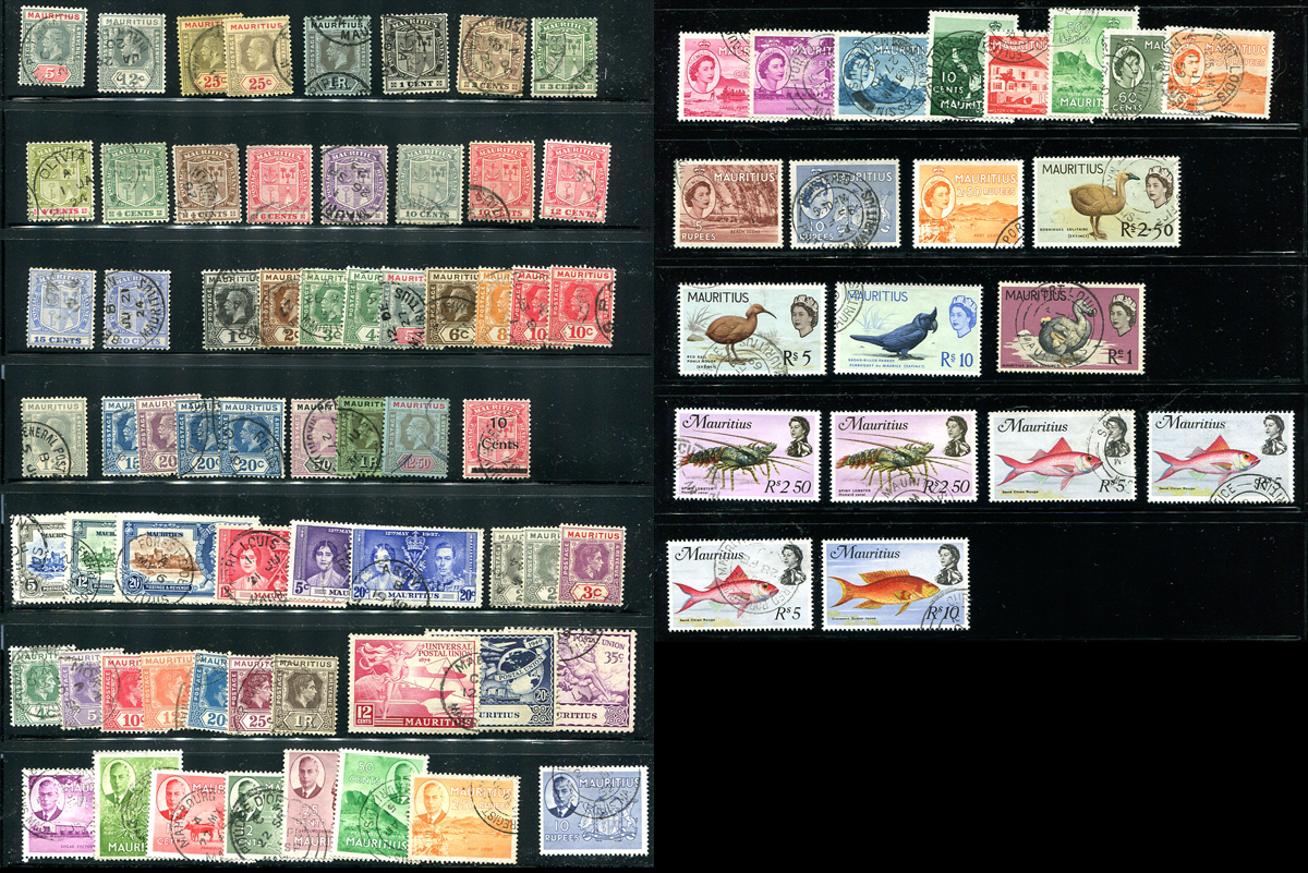 King George V, VI and early Queen Elizabeth II used selection with a couple of dozen stamps with terrific cancels, and not always from the big towns. Includes denominations to 10R and some die types or watermark variations. Very clean and noted better singles such as #249, and #356b. 2024 Scott US$390.85 =