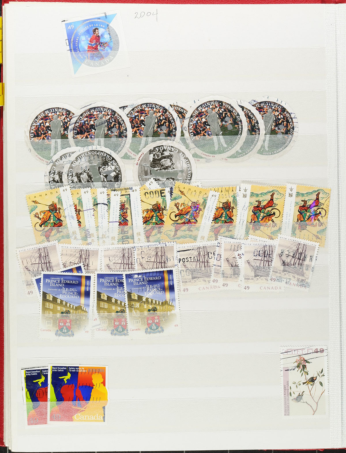 Used stock in 7 stockbooks and a binder, 1870's-2005. The stockbooks are well organized containing several thousands of stamps (including some back of the book and revenue issues), beginning with a small selection of Victorian issues, with strength from the Admirals up to 2005 (includes a few issues post-2005). We encountered a variety of postmarks including cds, split ring, POCON, MOON, and other cancel types, including a few socked on the nose town cancels. The binder contains roughly 20 pages of mostly high denomination definitive issues from the 1970's to the 1980's. A nice lot for the used collector. Estimate =