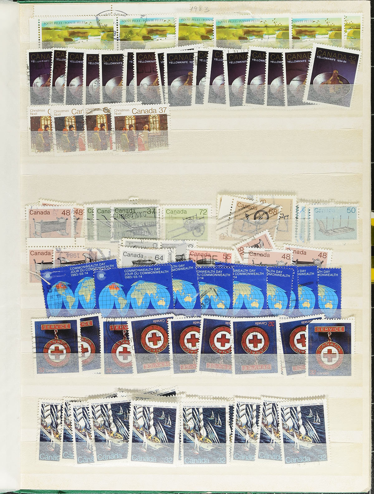 Used stock in 7 stockbooks and a binder, 1870's-2005. The stockbooks are well organized containing several thousands of stamps (including some back of the book and revenue issues), beginning with a small selection of Victorian issues, with strength from the Admirals up to 2005 (includes a few issues post-2005). We encountered a variety of postmarks including cds, split ring, POCON, MOON, and other cancel types, including a few socked on the nose town cancels. The binder contains roughly 20 pages of mostly high denomination definitive issues from the 1970's to the 1980's. A nice lot for the used collector. Estimate =