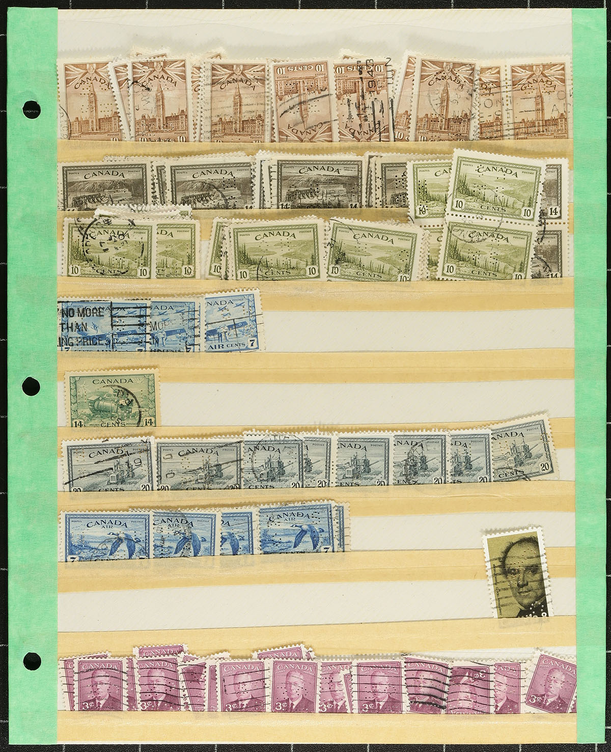 Consignment remainders of used Canada, 1900s-1970s, containing many hundreds of stamps in 3 albums (including a hingeless Lighthouse album), and loose pages. A spot check of material indicated a few Victorian and Edward issues, but primarily sets and partial sets from Admirals up to the 1950's, with complete runs of used up to the 1970's. We note strength in pre-cancels (Admirals to Elizabethan issues) and some back of the book material. A few faults, overall fine to very fine. Estimate =
