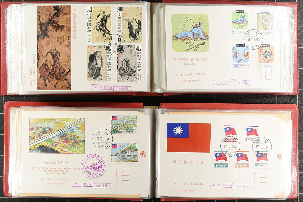 Collection of Republic of China first day cover, 1972-1988, containing 258 covers in neatly organized 5 cover albums. We note singles and sets franking, ranging from Scott #s 1800-2646, which were catalogued as stamps alone (with no added premium for FDC). A nice clean lot. 2025 Scott US$253.00 =