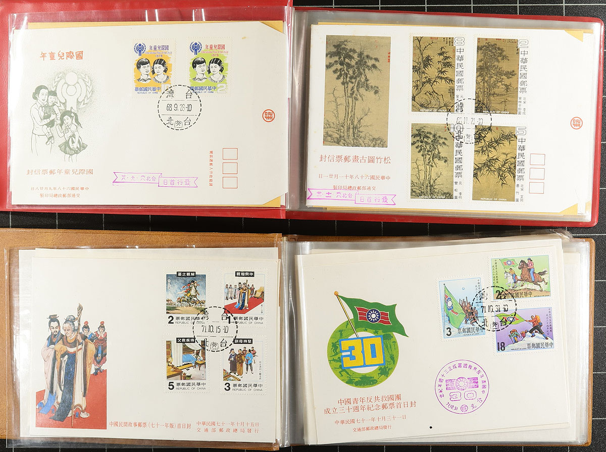 Collection of Republic of China first day cover, 1972-1988, containing 258 covers in neatly organized 5 cover albums. We note singles and sets franking, ranging from Scott #s 1800-2646, which were catalogued as stamps alone (with no added premium for FDC). A nice clean lot. 2025 Scott US$253.00 =