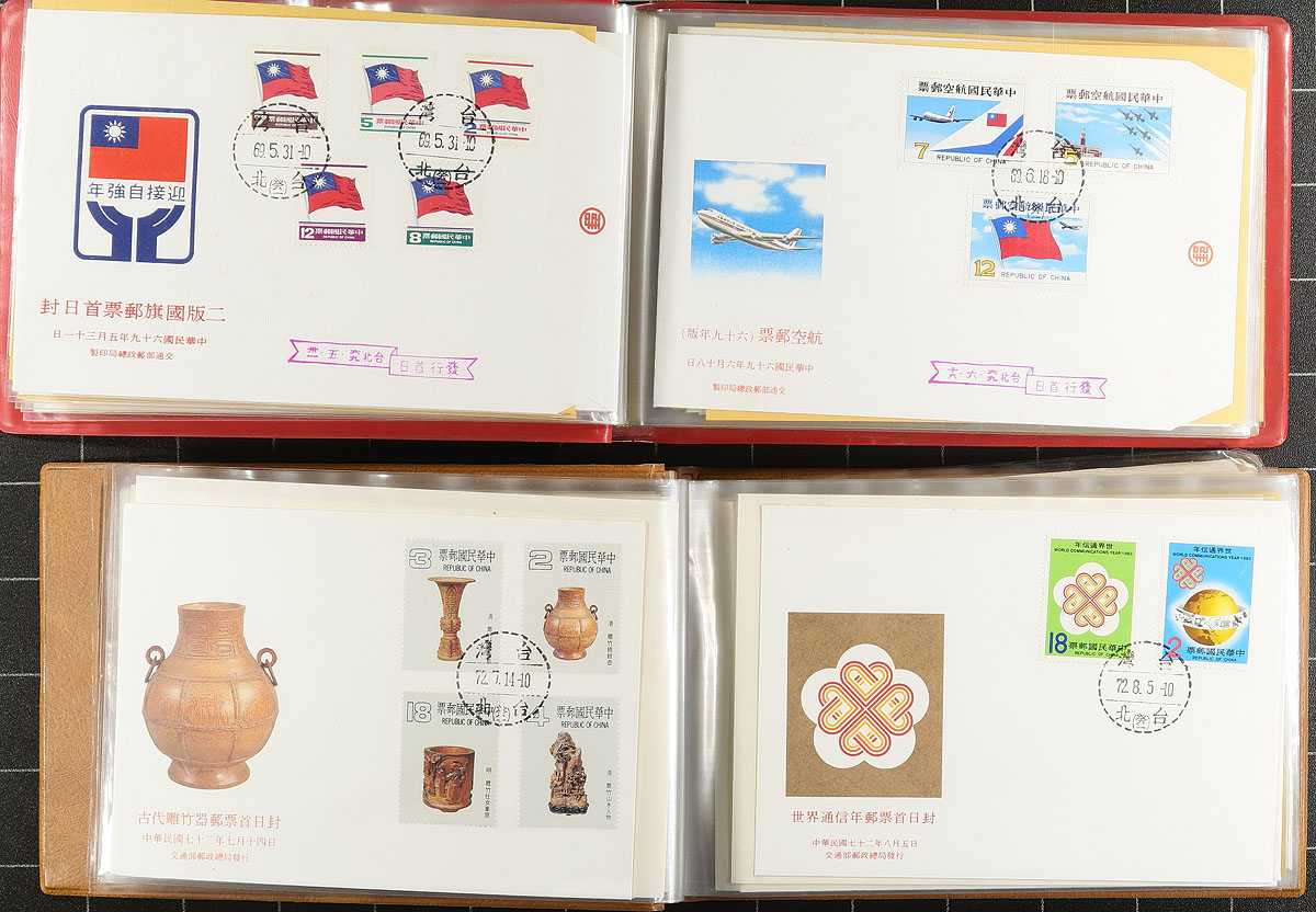 Collection of Republic of China first day cover, 1972-1988, containing 258 covers in neatly organized 5 cover albums. We note singles and sets franking, ranging from Scott #s 1800-2646, which were catalogued as stamps alone (with no added premium for FDC). A nice clean lot. 2025 Scott US$253.00 =