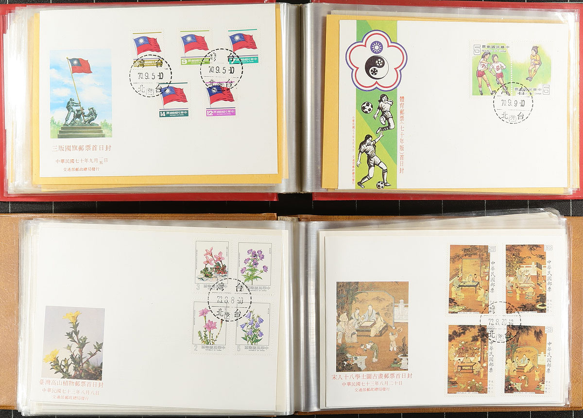 Collection of Republic of China first day cover, 1972-1988, containing 258 covers in neatly organized 5 cover albums. We note singles and sets franking, ranging from Scott #s 1800-2646, which were catalogued as stamps alone (with no added premium for FDC). A nice clean lot. 2025 Scott US$253.00 =