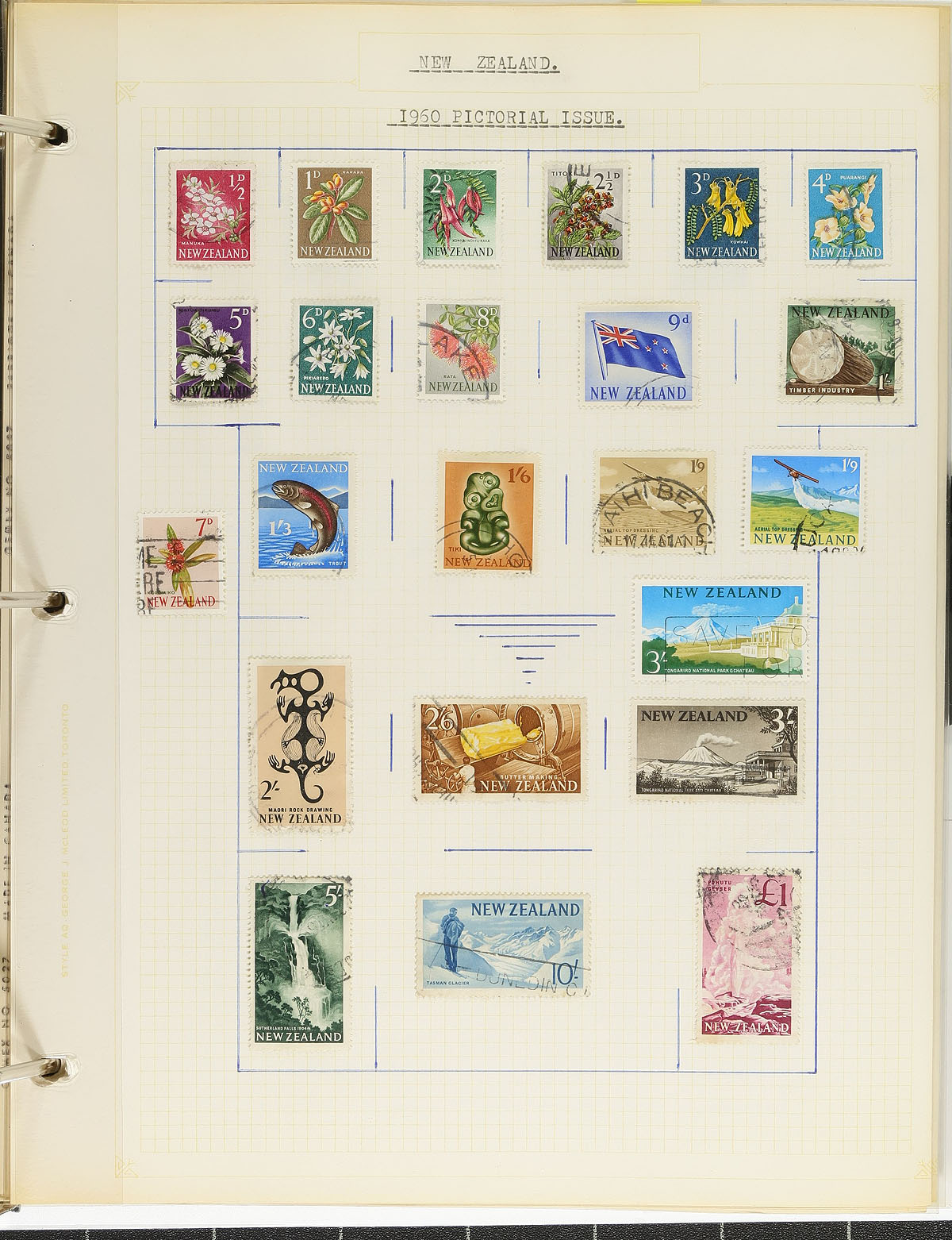 Collection of mint and used New Zealand, 1880's-1979, containing several hundreds of stamps, on roughly 100 well described pages housed in 4 binders. The collection begins with selection of used singles and partial sets up to 1930, with a mixture of mint and used material thereafter, with an attempt by the collector to have a mint and used example for some issues. The lot also includes selections of postal-fiscals, postage dues, and officials. A spot check indicated a few singles and sets cataloguing $20 and up. Condition is mixed with the early issues, with a spot check indicating stamps having at least 2 hinges per item. Still a nice collection, with online photos showing a sampling. Estimate =