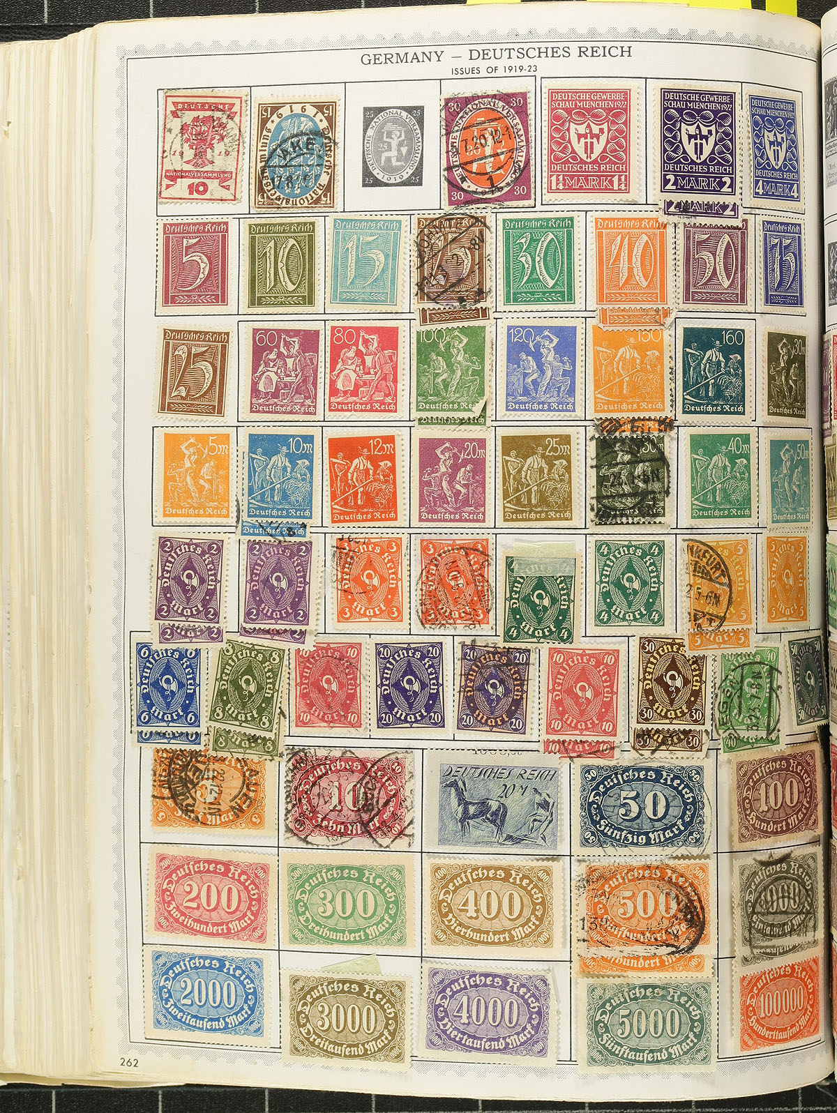 Large worldwide collection in a thick "Comprehensive World-wide Stamp Album" (published by Minkus, 1956), containing many thousands of primarily used stamps from A to V countries, ranging from the 1850's to 1950. A spot check indicated several full pages of stamps, with better representation from European countries (Belgium, Germany, Hungary, Switzerland, to name just a few), France and French Colonies, British Commonwealth, and much more, with some stamps cataloguing in the $5 and up, leaving finds to the dedicated collector. Postmark interest includes CDS and other town postmarks types. A nice lot for the worldwide collector, with photos showing a sampling. Estimate =
