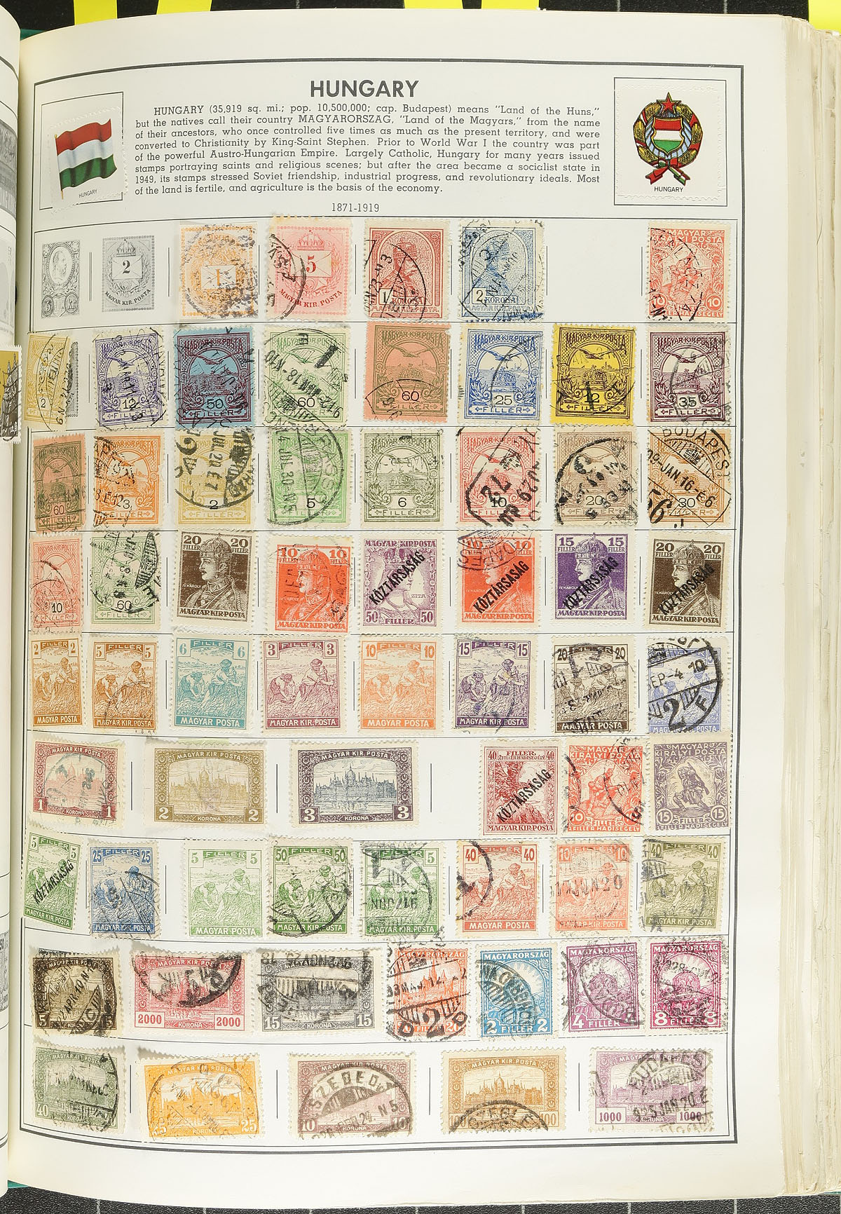 Large worldwide collection in a thick "Senior Statesman" and a "Standard" worldwide album, containing many thousands of primarily used stamps from A to Z countries, ranging from the 1850's to the mid 1970's. We note better representation from European countries (Austria, Belgium, Germany, Italy, to name a few), France and French colonies, British Commonwealth, along with China, Japan, and much more with a spot check indicated a few singles and partial sets cataloguing $5 to $10 and up. Postmark interest includes a variety of town cancel types. A nice lot for the worldwide collector. Estimate =