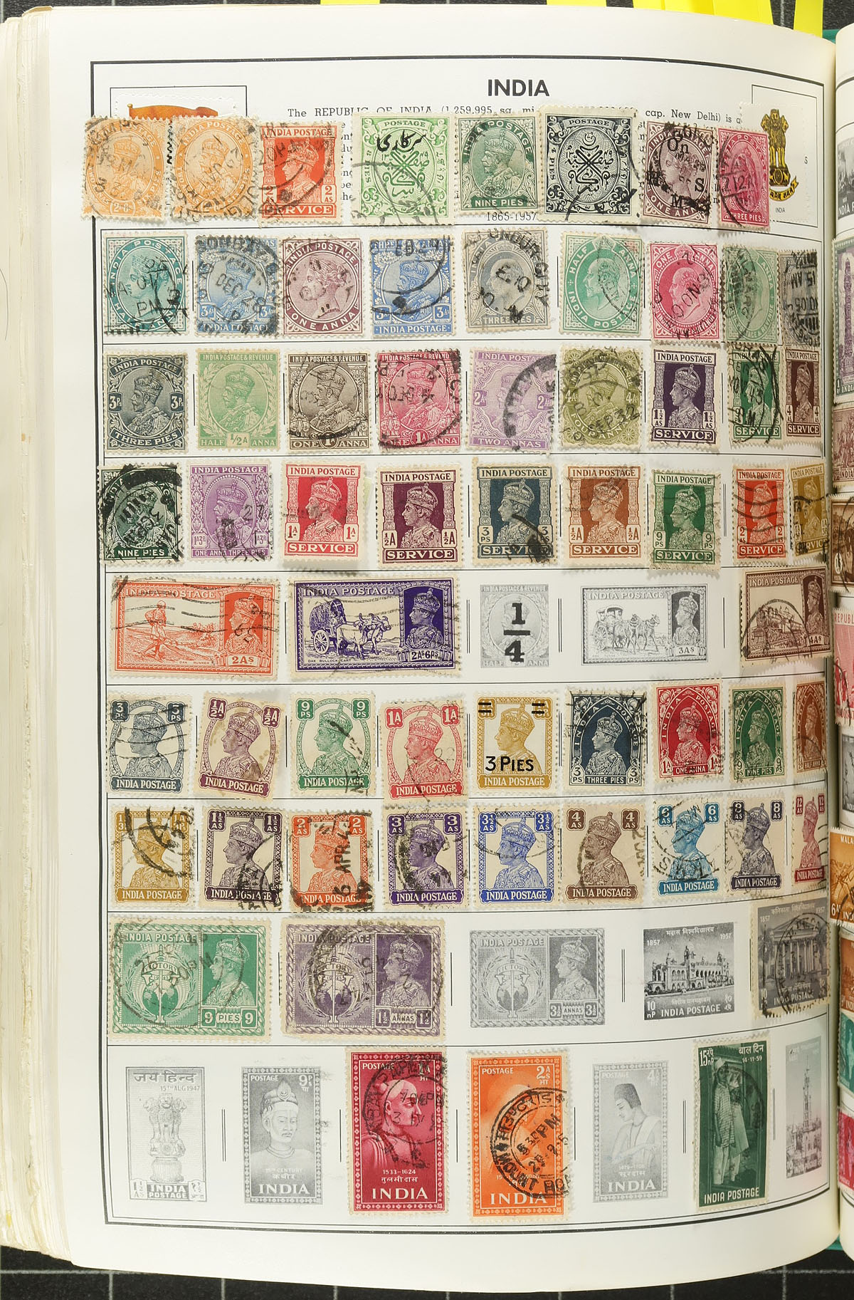 Large worldwide collection in a thick "Senior Statesman" and a "Standard" worldwide album, containing many thousands of primarily used stamps from A to Z countries, ranging from the 1850's to the mid 1970's. We note better representation from European countries (Austria, Belgium, Germany, Italy, to name a few), France and French colonies, British Commonwealth, along with China, Japan, and much more with a spot check indicated a few singles and partial sets cataloguing $5 to $10 and up. Postmark interest includes a variety of town cancel types. A nice lot for the worldwide collector. Estimate =