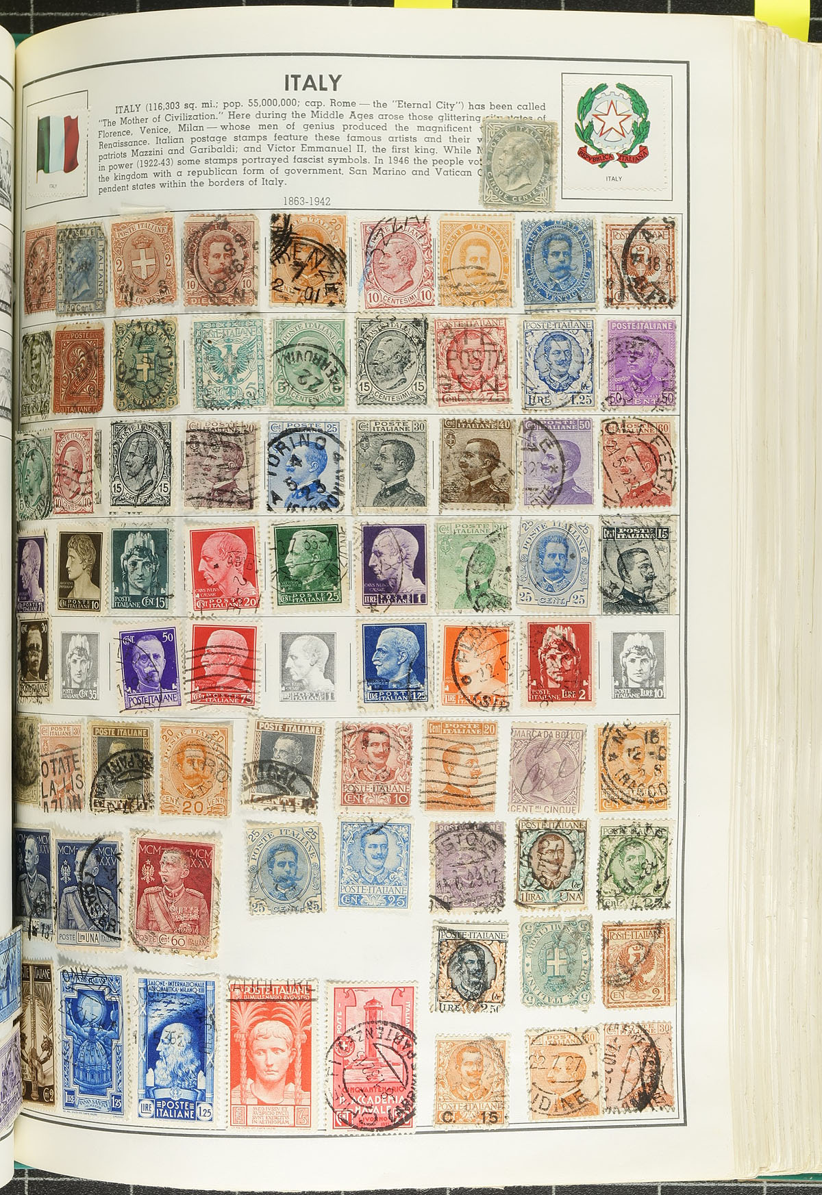Large worldwide collection in a thick "Senior Statesman" and a "Standard" worldwide album, containing many thousands of primarily used stamps from A to Z countries, ranging from the 1850's to the mid 1970's. We note better representation from European countries (Austria, Belgium, Germany, Italy, to name a few), France and French colonies, British Commonwealth, along with China, Japan, and much more with a spot check indicated a few singles and partial sets cataloguing $5 to $10 and up. Postmark interest includes a variety of town cancel types. A nice lot for the worldwide collector. Estimate =