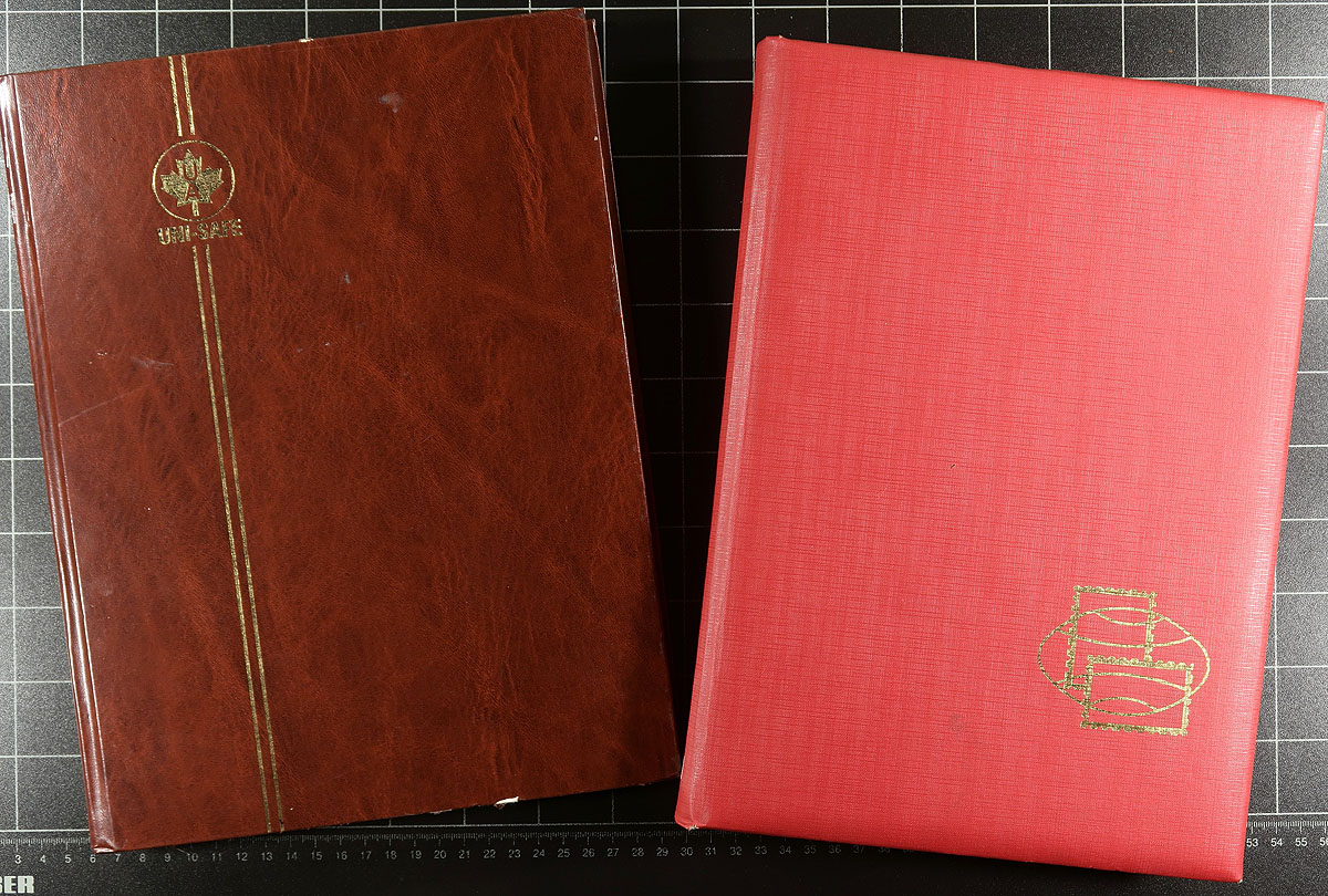 Group of gently used and like new stockbooks and albums filling a bankers box. The lot includes 8 stockbooks with various configurations and 5 clean albums with 18 manila pages each. A useful lot waiting for a new collector, with retail cost on these items always on the rise. Estimate =