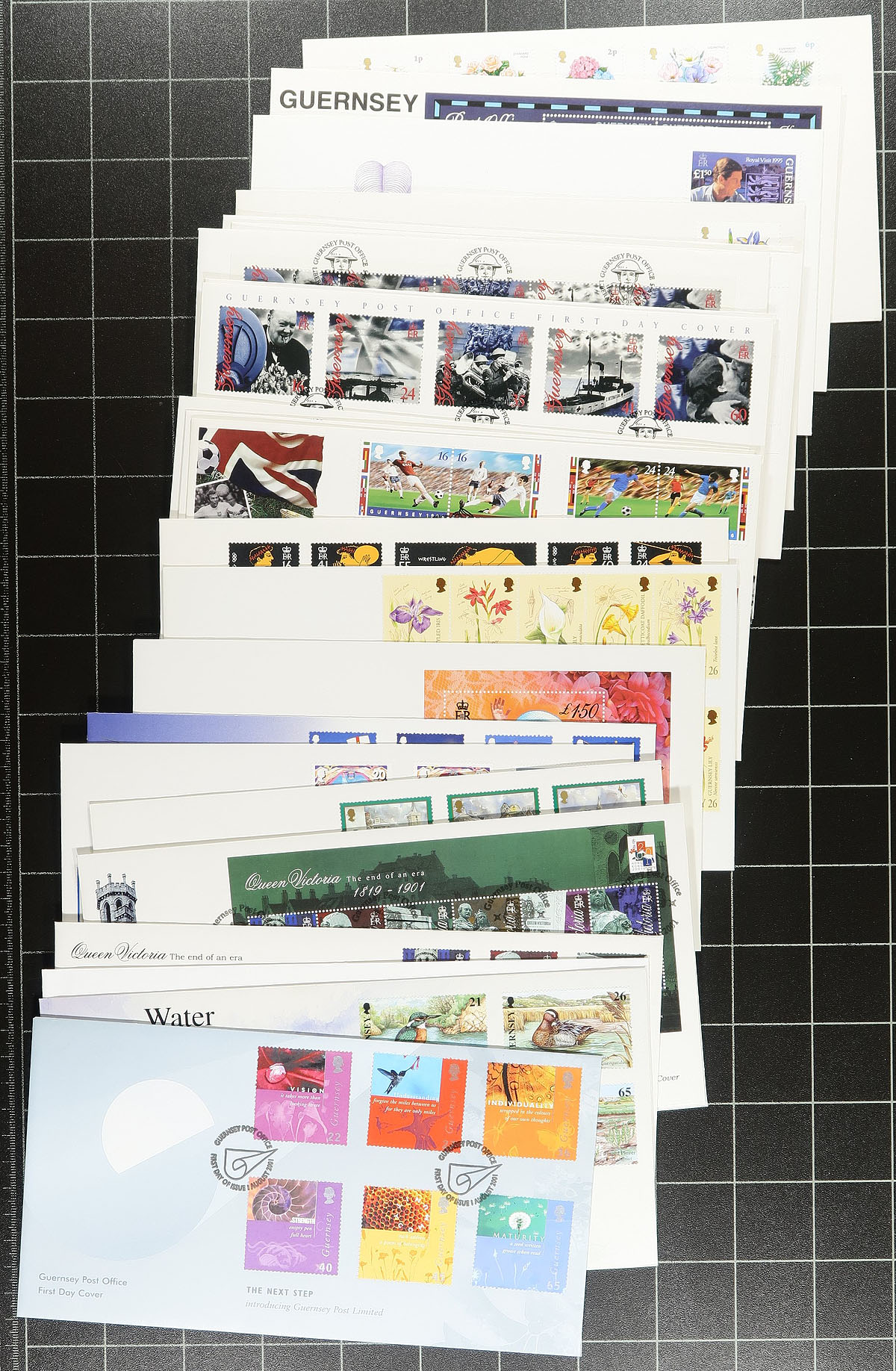 Colourful group of roughly 150 first day cover, 1980’s-2000’s, with roughly 110 Guernsey (1990’s-2000’s) and 40 Great Britian (1980’s), noting primarily sets and souvenir sheet frankings, along with a numismatic first day. A lovely group noting many thematic and topical subject, overall very fine. Estimate =