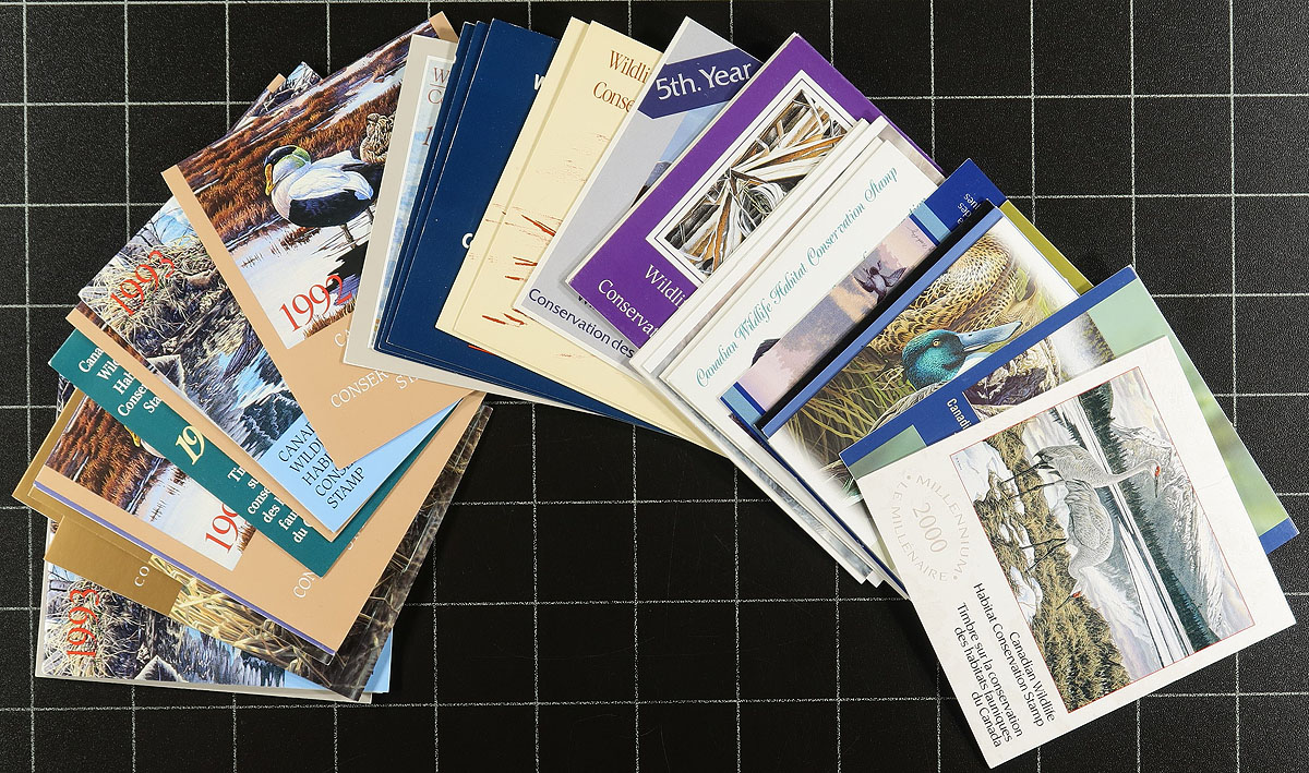 Group of 33 Federal Wildlife Habitat Conservation booklets, with years 1985 (x2), 1986 (x2), 1987 (x3), 1988 (x2), 1989 (x2), 1990 (x3), 1991, 1992 (x3), 1993 (x2) 1995 (x3), 1996-1998, 2000-2006. A nice clean group for any collector or dealer. 2024 Unitrade =