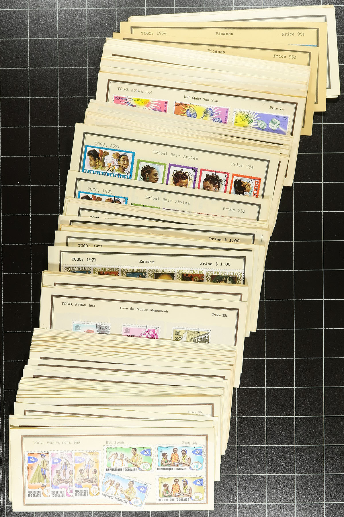 Accumulation of topical and thematic material on hundreds of approval pages or books, containing used sets depicting animals, flowers, insects, religious art, famous people, ships, and much more. We note representation from roughly 20 different issuing countries generally ranging from H to T countries, with material appearing to range from the 1970’s. Duplication appears to be from 5 to 10 for some sets. A few small faults with a few of the sets, overall fine to very fine. Estimate =