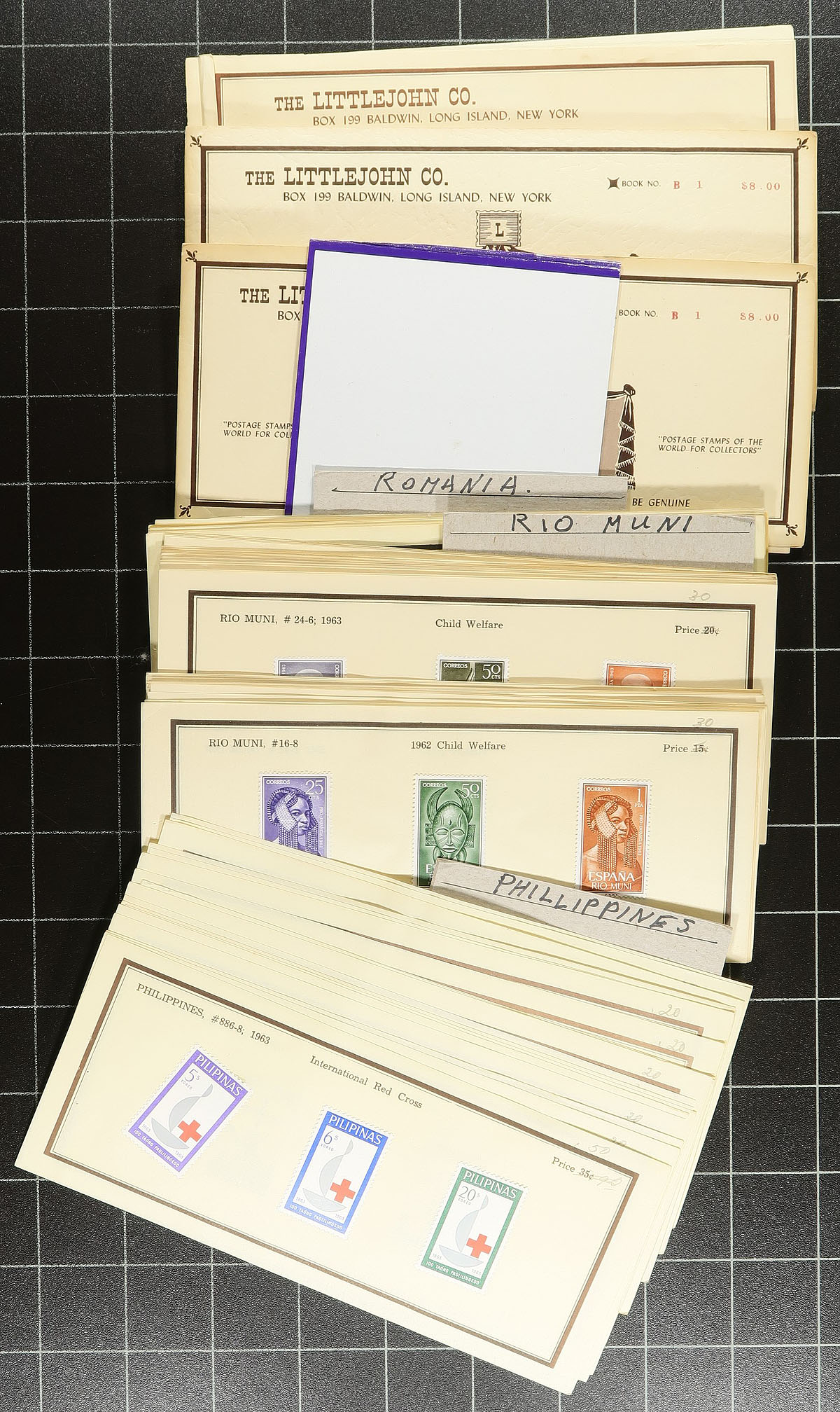 Accumulation of topical and thematic material on hundreds of approval pages or books, containing used sets depicting animals, flowers, insects, religious art, famous people, ships, and much more. We note representation from roughly 20 different issuing countries generally ranging from H to T countries, with material appearing to range from the 1970’s. Duplication appears to be from 5 to 10 for some sets. A few small faults with a few of the sets, overall fine to very fine. Estimate =