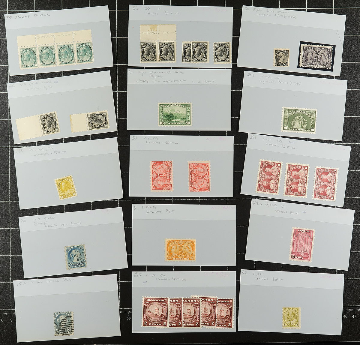Mint and used "catch all", noting a wide variety of material ranging from Large Queens to the modern era, in glassines, 102 cards, album pages, and more. We note Yukon Wildlife signed single stamps from 1996-1999 (c.v. $110), accumulation of 3c Small Queens, mint booklets and plate blocks (we estimate $75 of face value stamps), sealed year sets from 1978, and a few sheets, and much more. Our photos show an overview of the lot. An interesting lot for all Canada collectors. Estimate =