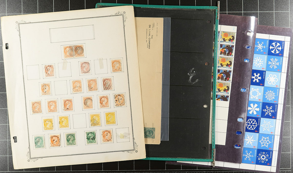 Mint and used "catch all", noting a wide variety of material ranging from Large Queens to the modern era, in glassines, 102 cards, album pages, and more. We note Yukon Wildlife signed single stamps from 1996-1999 (c.v. $110), accumulation of 3c Small Queens, mint booklets and plate blocks (we estimate $75 of face value stamps), sealed year sets from 1978, and a few sheets, and much more. Our photos show an overview of the lot. An interesting lot for all Canada collectors. Estimate =