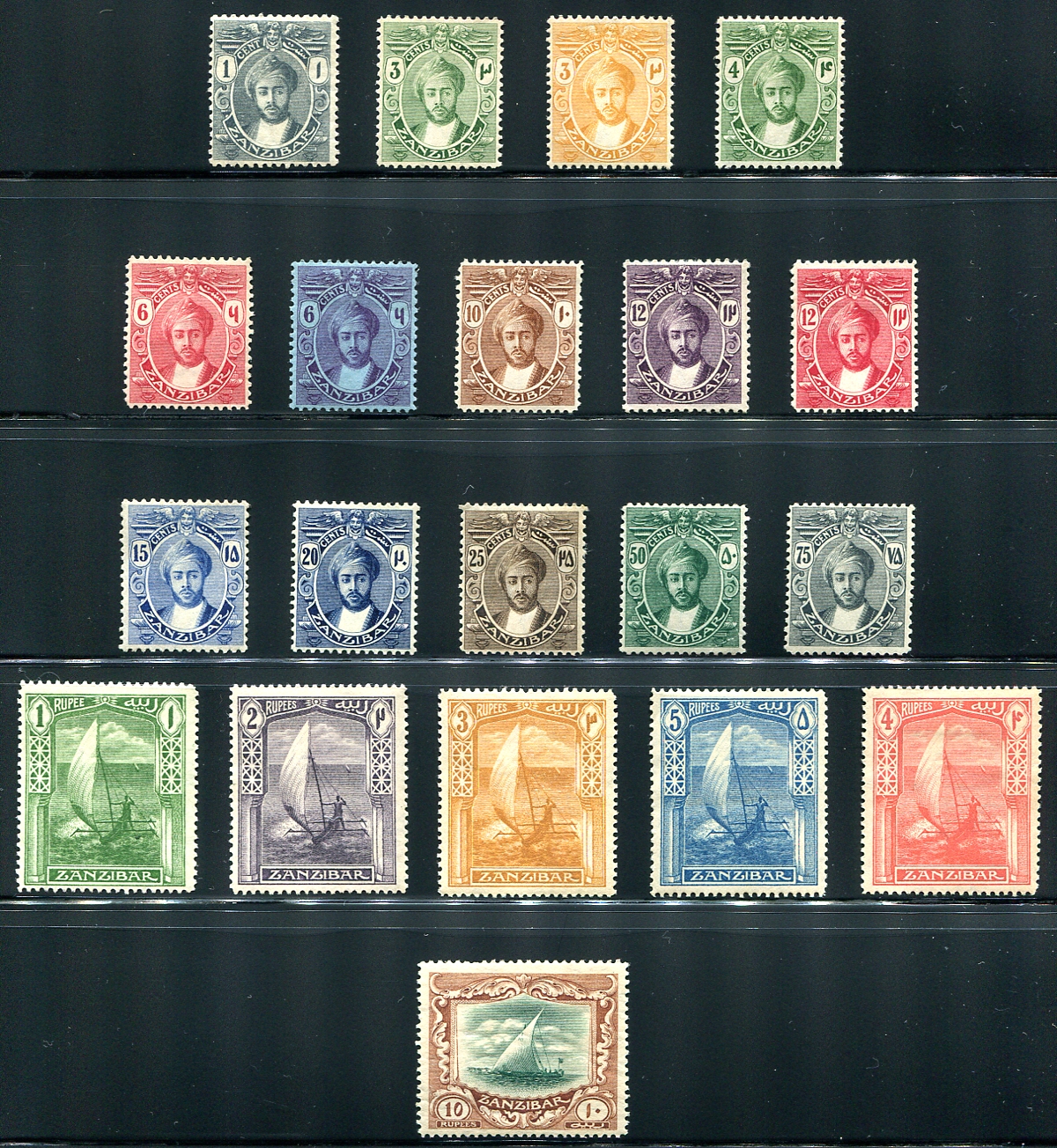 Complete mint Lightly Hinged set of the 1921-1929 issued "Sultan Khaifa bin Harub" and "Dhow" series of 20 different values (watermark 4). A tough set to assemble complete. 2024 Scott US$350.00 =
