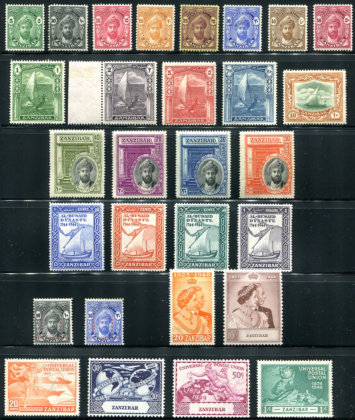 Attractive mint Lightly Hinged run of 6 complete sets from the 1936-1949 period (complete inclusively for that period), including the 1936 "Sultan Khaifa bin Harub / Dhow", 1936 Anniversary of Reign, 1944 "Al Busaid Dynasty", 1946 overprints, 1949 Silver Wedding and 1949 UPU issue. A clean offering. 2024 Scott US$203.05 =