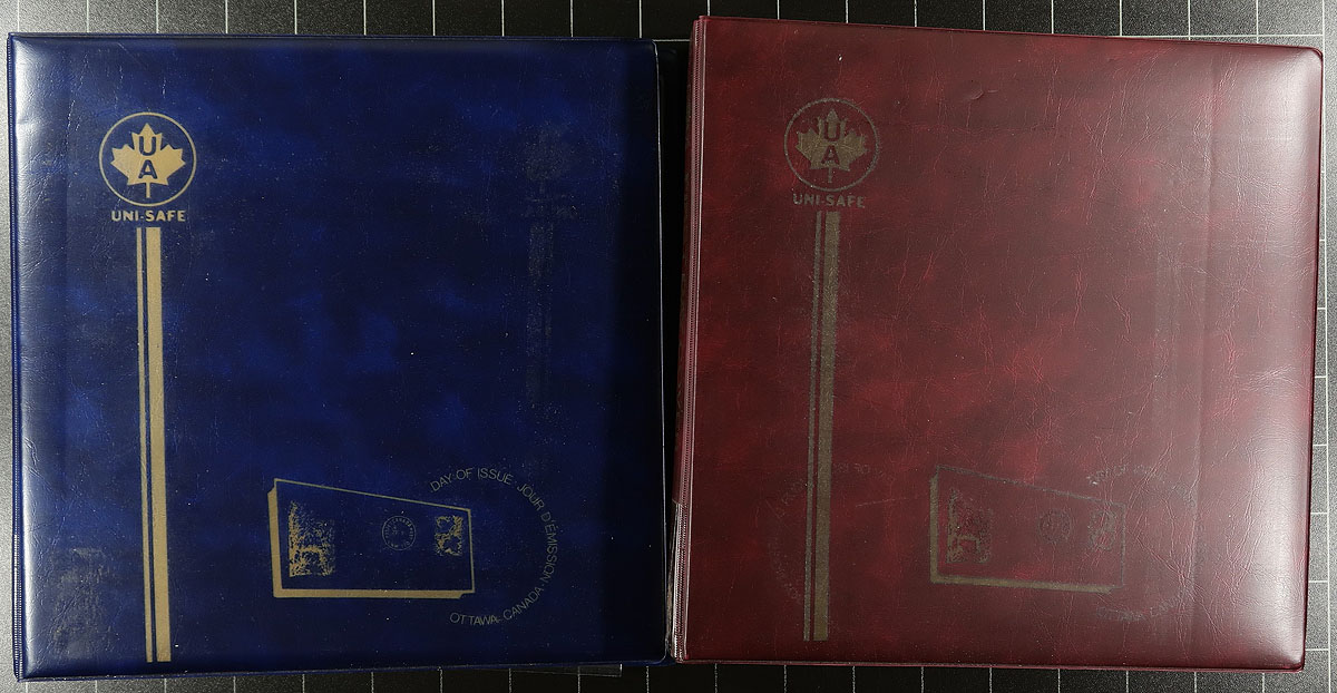 Group of useful supplies, including 6 stockbooks (various configurations), 6 cover albums (including a few for longer sized envelopes), and an album with quadrille pages specified for roughly 35 different countries. Items range from used to like new condition, just waiting to be put back into circulation. Estimate =