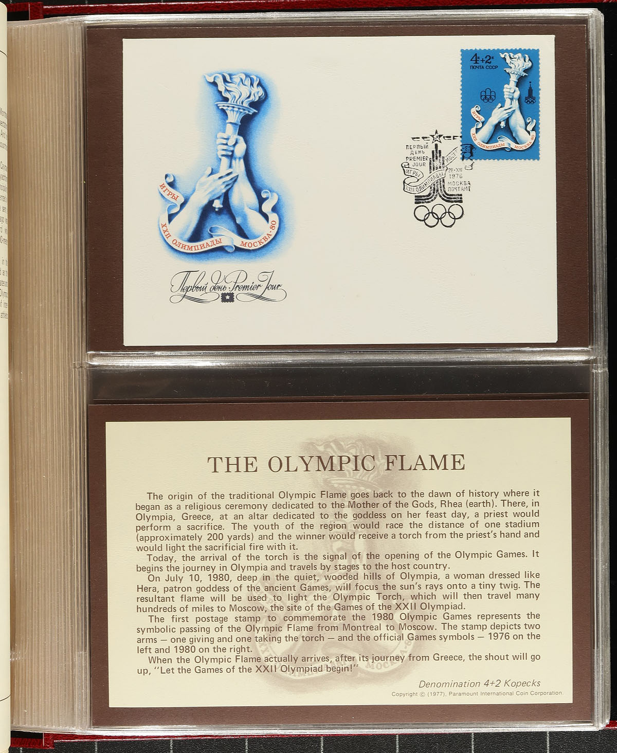 Group of 7 stamp company prepared topical collections in nicely bound albums containing a few hundred covers and stamps including: 1980 Olympic Collection (with slipcase), Limited Edition First Day Lithographs, First Day Covers From Around The World, Grimms' Fairytales Panel Collection, Postal Commemorative Society World of Stamps, Royal Wedding Philatelic Panels Collection, The Prince Andrew Royal Wedding First Day Covers. A very nice group primarily focusing on a few hundred Commonwealth covers and stamps. A very nice group. Estimate =