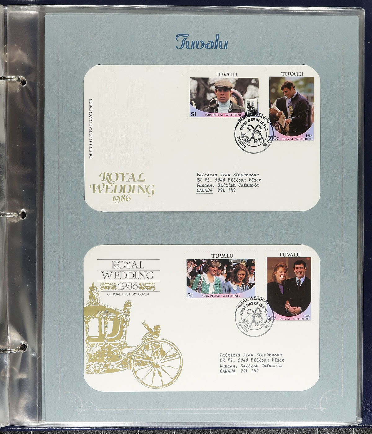 Group of 7 stamp company prepared topical collections in nicely bound albums containing a few hundred covers and stamps including: 1980 Olympic Collection (with slipcase), Limited Edition First Day Lithographs, First Day Covers From Around The World, Grimms' Fairytales Panel Collection, Postal Commemorative Society World of Stamps, Royal Wedding Philatelic Panels Collection, The Prince Andrew Royal Wedding First Day Covers. A very nice group primarily focusing on a few hundred Commonwealth covers and stamps. A very nice group. Estimate =