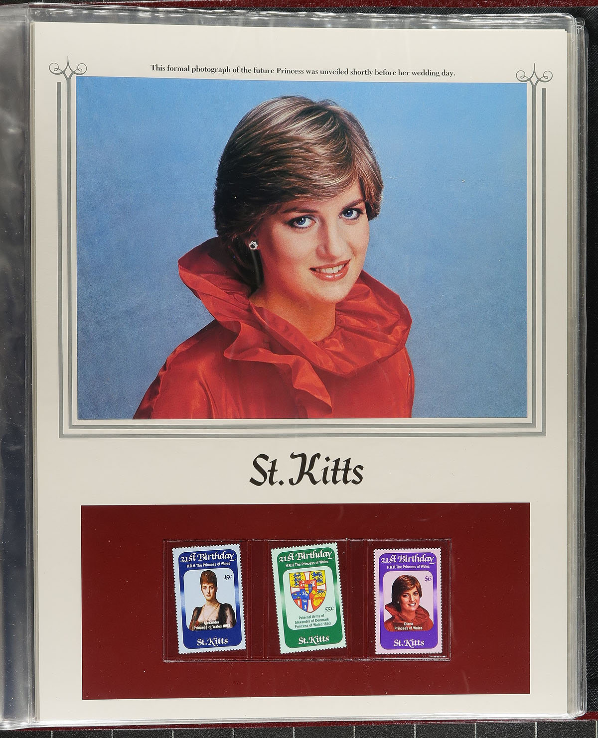 Group of 7 stamp company prepared topical collections in nicely bound albums containing a few hundred covers and stamps including: 1980 Olympic Collection (with slipcase), Limited Edition First Day Lithographs, First Day Covers From Around The World, Grimms' Fairytales Panel Collection, Postal Commemorative Society World of Stamps, Royal Wedding Philatelic Panels Collection, The Prince Andrew Royal Wedding First Day Covers. A very nice group primarily focusing on a few hundred Commonwealth covers and stamps. A very nice group. Estimate =