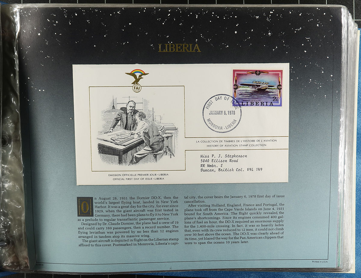 Group of 10 stamp company prepared topical collections in nicely bound albums containing a few hundred covers and stamps including: The International Council for Bird Preservation, Historic Landmarks of Europe First Day Cover Collection, History of Communications in Europe First Day Cover Collections, The History of Aviation, Christmas Collector Panels "Featuring Norman Rockwell", U.S. Commemorative Stamp Collector Panels, along with 4 more. A nice lot for thematic and topical collectors. Estimate =
