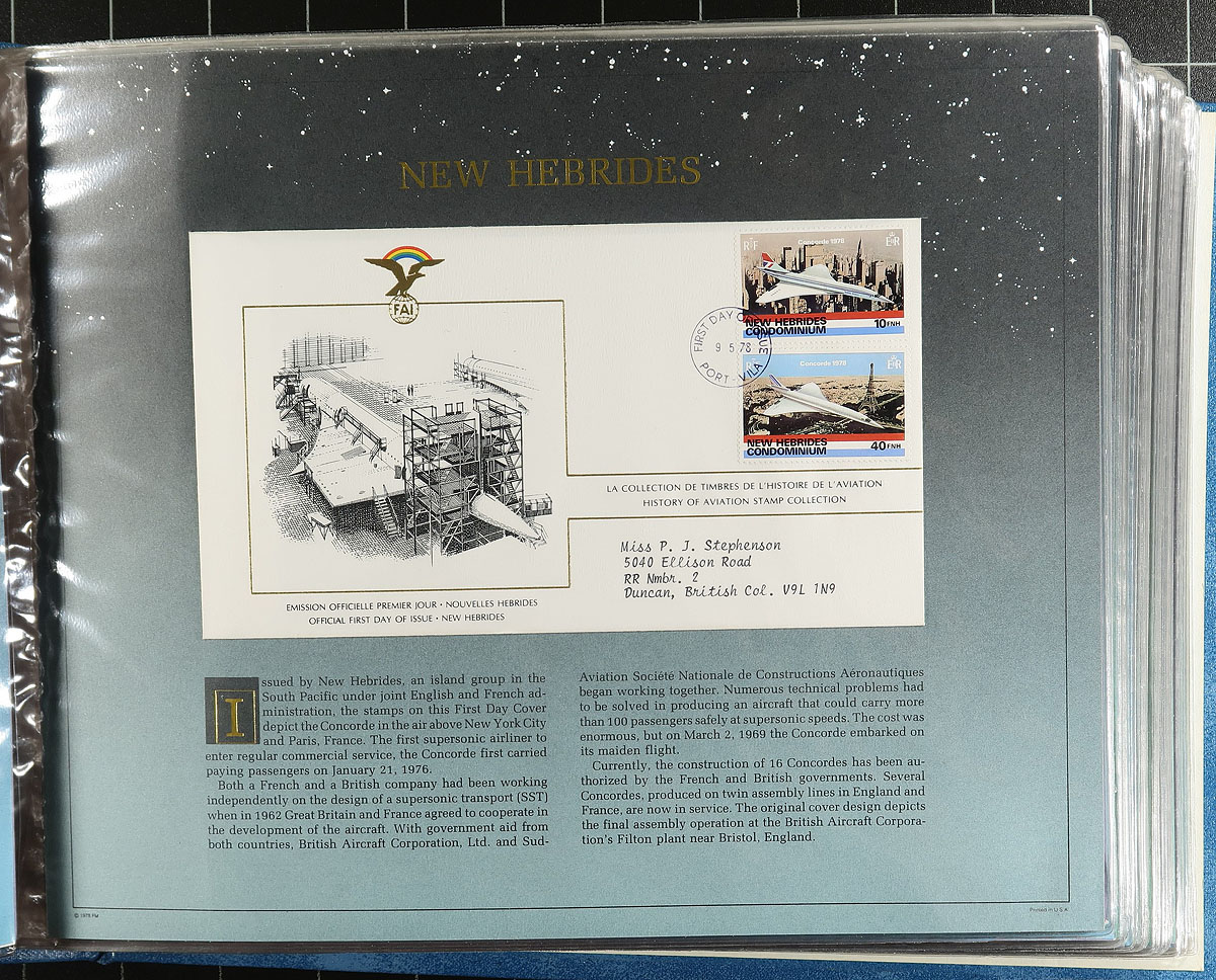 Group of 10 stamp company prepared topical collections in nicely bound albums containing a few hundred covers and stamps including: The International Council for Bird Preservation, Historic Landmarks of Europe First Day Cover Collection, History of Communications in Europe First Day Cover Collections, The History of Aviation, Christmas Collector Panels "Featuring Norman Rockwell", U.S. Commemorative Stamp Collector Panels, along with 4 more. A nice lot for thematic and topical collectors. Estimate =