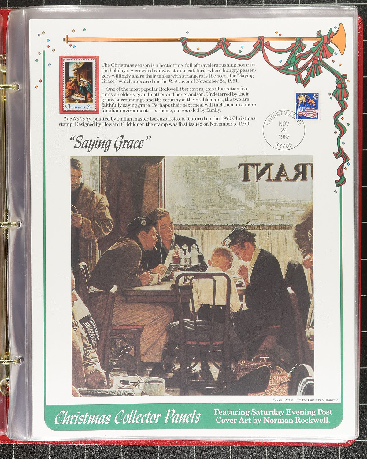 Group of 10 stamp company prepared topical collections in nicely bound albums containing a few hundred covers and stamps including: The International Council for Bird Preservation, Historic Landmarks of Europe First Day Cover Collection, History of Communications in Europe First Day Cover Collections, The History of Aviation, Christmas Collector Panels "Featuring Norman Rockwell", U.S. Commemorative Stamp Collector Panels, along with 4 more. A nice lot for thematic and topical collectors. Estimate =