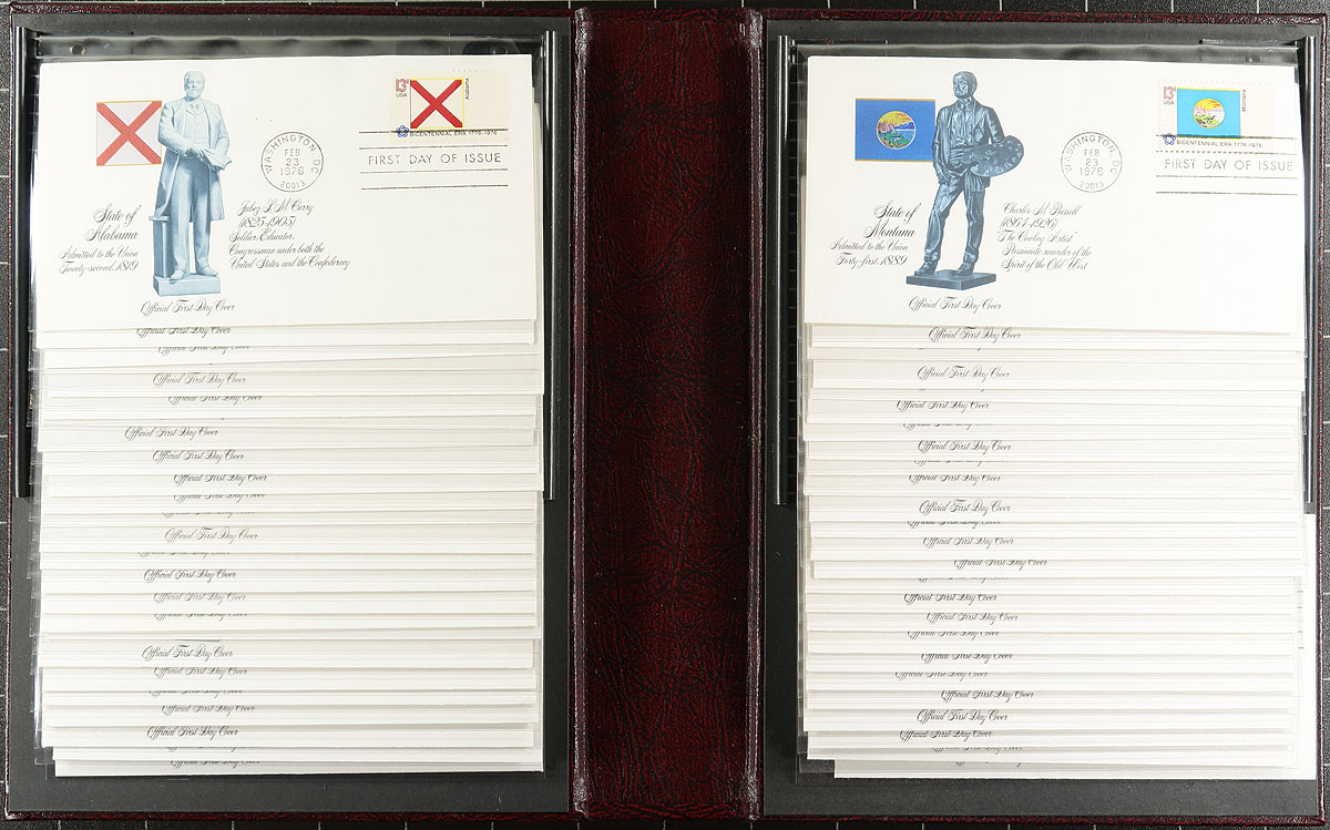 Group of 8 U.S.A. topical collections, prepared and sold intact as collections, in nicely bound albums containing a few hundred covers and stamps including: Historic Stamps of America, 1984 Olympics Commemorative Folio, Flags of the Fifty States, State Birds and Flowers Commemorative Mint-Stamp Panels, U.S. Commemorative Stamp Collector Panels, and more. A nice lot for thematic and topical collectors. Estimate =