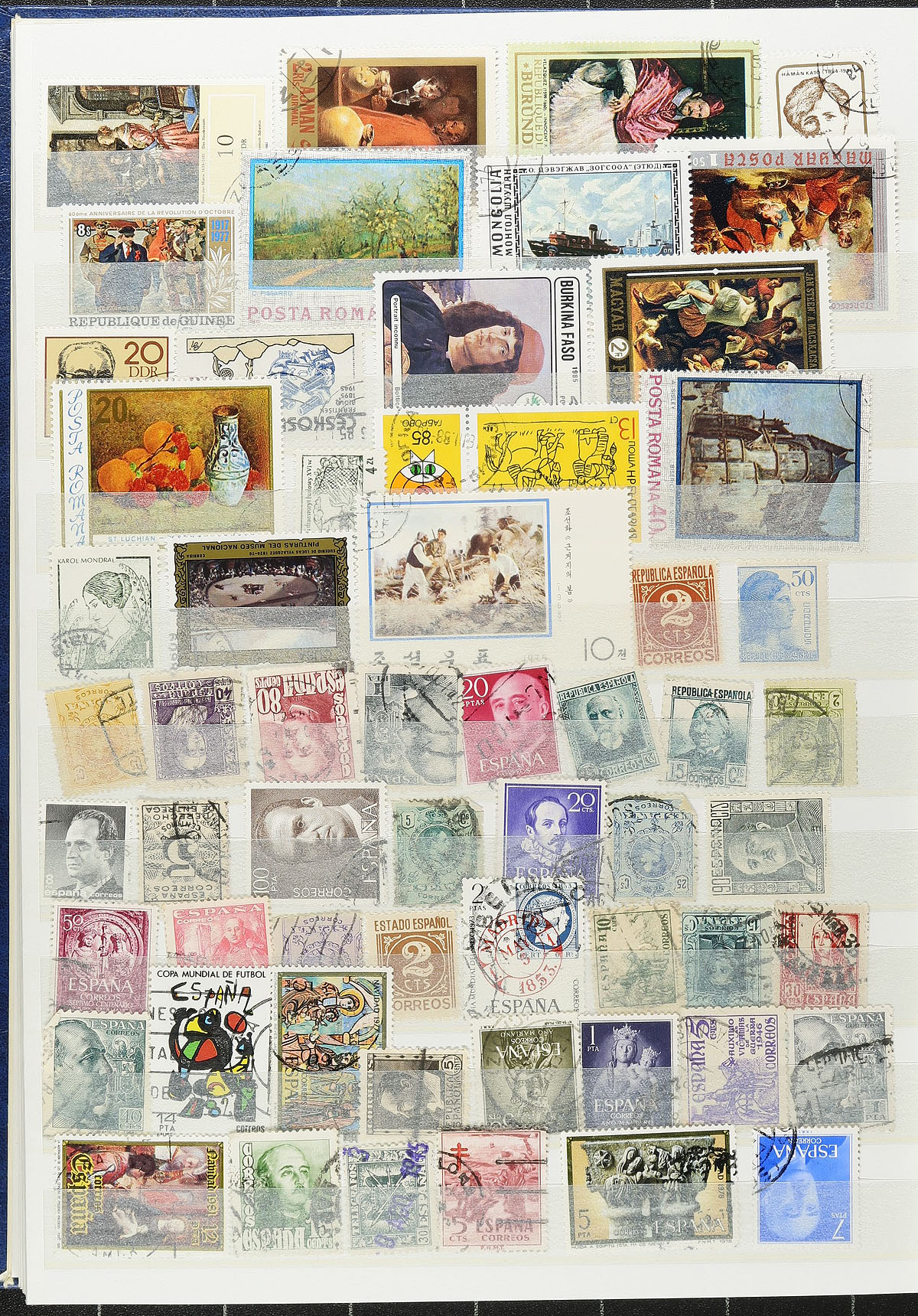 Large collections / accumulations of primarily used worldwide stamps in 4 stockbooks and 2 albums. The lot contains a few thousand stamps, loosely organized in the stockbooks, and better organized in the 2 albums (A to Z countries), with material generally ranging from 1900 to the 1970's. We note better representation from European countries including Austria, Germany, Switzerland, along with Asia and British Commonwealth areas. A nice lot with potential finds for worldwide, thematic, and topical collectors. Online photos show a sampling. Estimate =