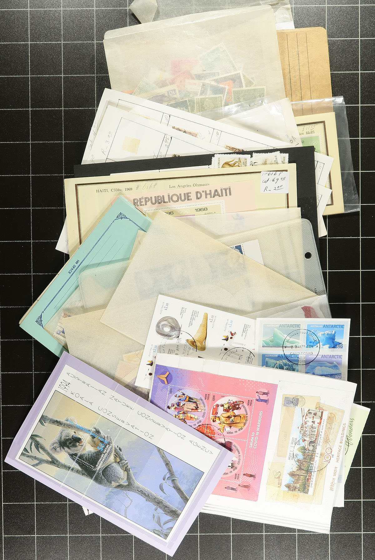 Accumulation of thousands of stamps in a carton, fairly organized in hundreds of glassines, 102 cards, along with material in envelopes, pages, etc. A spot check revealed primarily used stamps, from the Victorian era to the 1970's, with better representation from Great Britain and Commonwealth countries, Europe, and the United States. Some 102 cards have been priced for retail ranging from $1 to $5 per card, with a few items $10 and up. Could hold a few finds for the worldwide collector. Estimate =