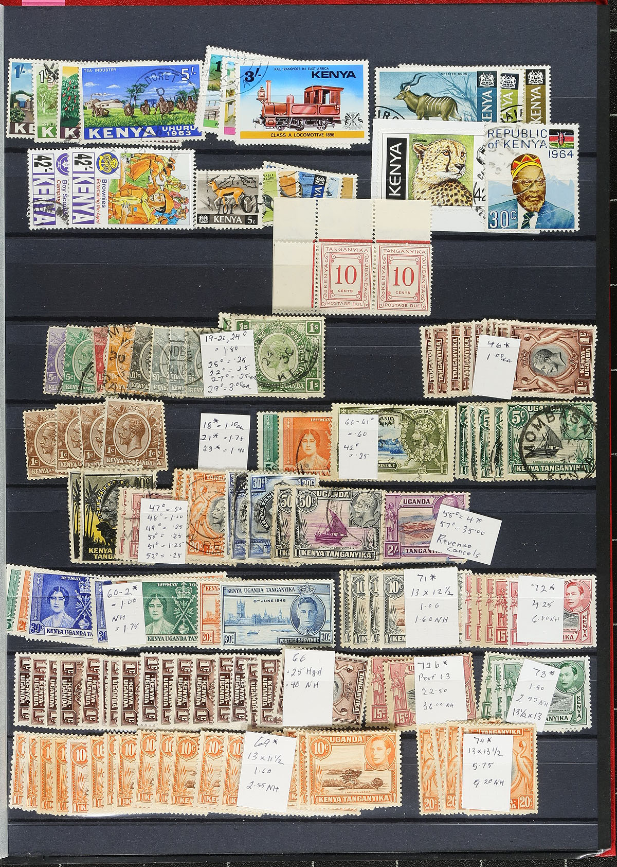 Neatly organized worldwide dealer stock in 6 binders, containing many hundreds of stamps including mint and used singles, sets, partial sets, and souvenir sheets in 6 stockbooks. The lot consists of 3 stockbooks with material ranging from G to M countries, along with a stockbook each of Europe, Latin America, and miscellaneous stamps. Each stockbook includes owner's identification and catalogue pricing, noting the majority of singles and sets ranging from $1 to $5 each, with some sets cataloguing $15 and up. We note better representation from European and British Commonwealth countries. A nice opportunity for collectors (especially thematic and topical), and dealers look for already identified material. Our photos show a sampling. Estimate =