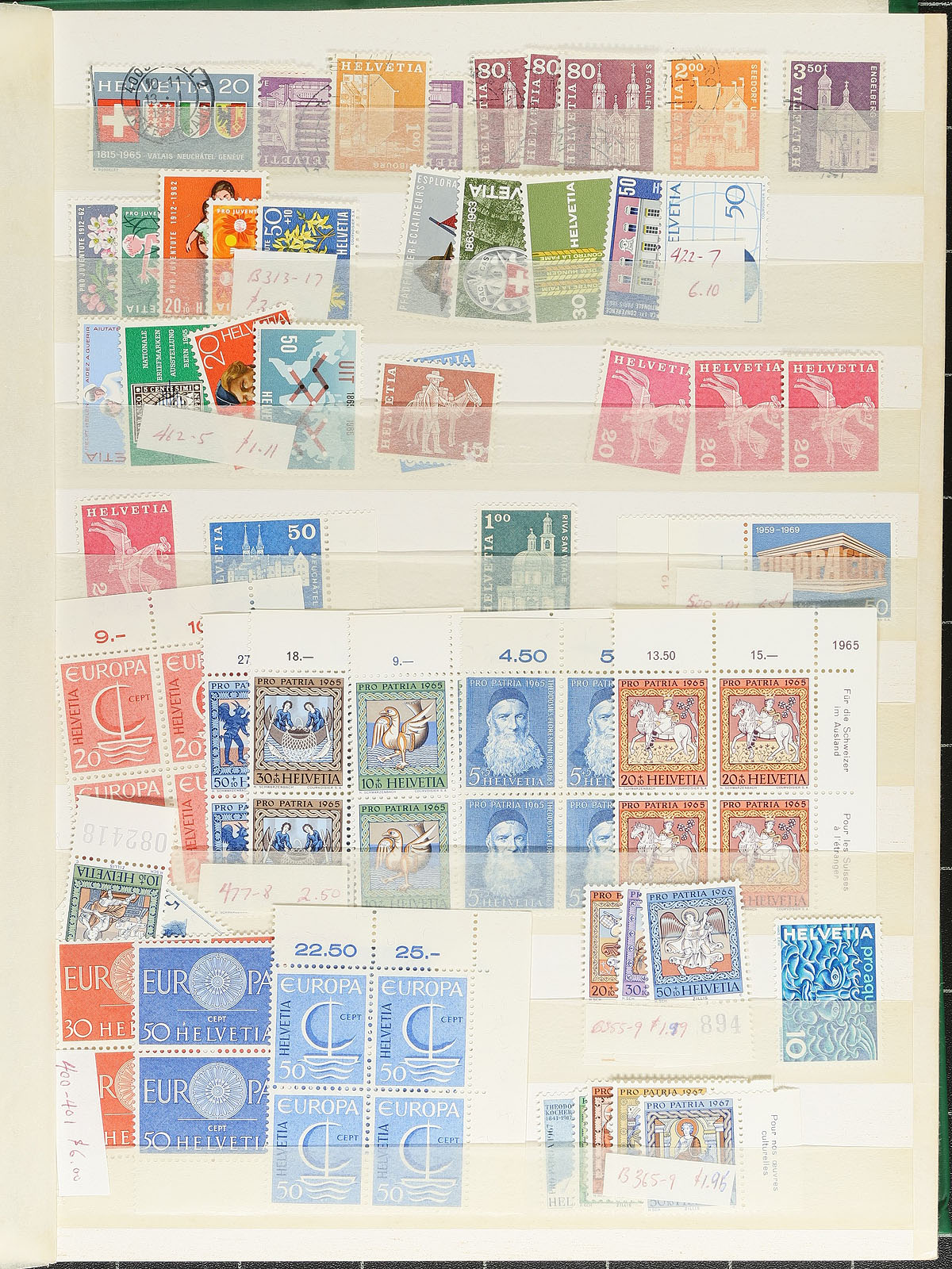 Neatly organized worldwide dealer stock in 6 binders, containing many hundreds of stamps including mint and used singles, sets, partial sets, and souvenir sheets in 6 stockbooks. The lot consists of 3 stockbooks with material ranging from N to Z countries, along with 3 stockbooks containing primarily European countries. Each stockbook includes owner's identification and catalogue pricing, noting the majority of singles and sets ranging from $1 to $5 each, with some sets cataloguing $15 and up. We note better representation from European and British Commonwealth countries. A nice opportunity for collectors (especially thematic and topical), and dealers look for already identified material. Our photos show a sampling. Estimate =