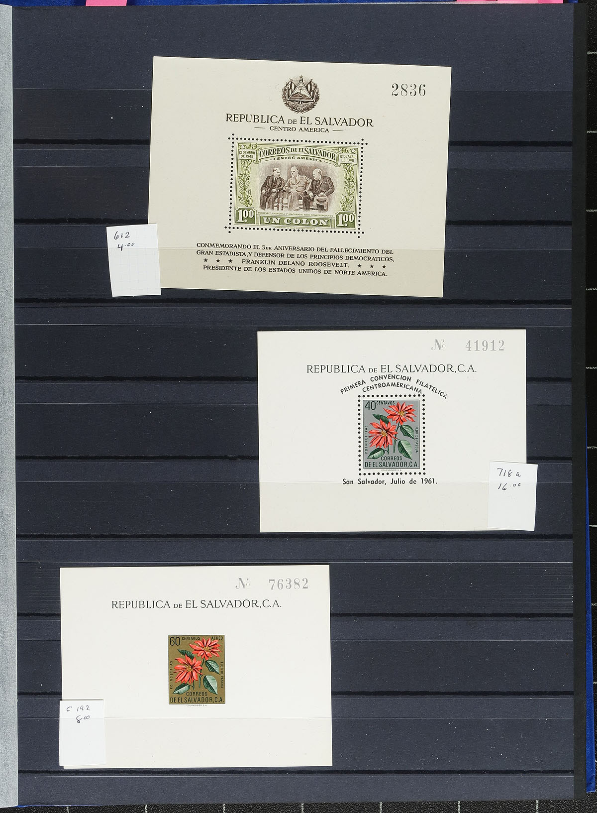 Neatly organized worldwide dealer stock in 6 binders, containing many hundreds of stamps including mint and used singles, sets, partial sets, and souvenir sheets in 6 stockbooks. The lot consists of 3 stockbooks with material ranging from N to Z countries, along with 3 stockbooks containing primarily European countries. Each stockbook includes owner's identification and catalogue pricing, noting the majority of singles and sets ranging from $1 to $5 each, with some sets cataloguing $15 and up. We note better representation from European and British Commonwealth countries. A nice opportunity for collectors (especially thematic and topical), and dealers look for already identified material. Our photos show a sampling. Estimate =