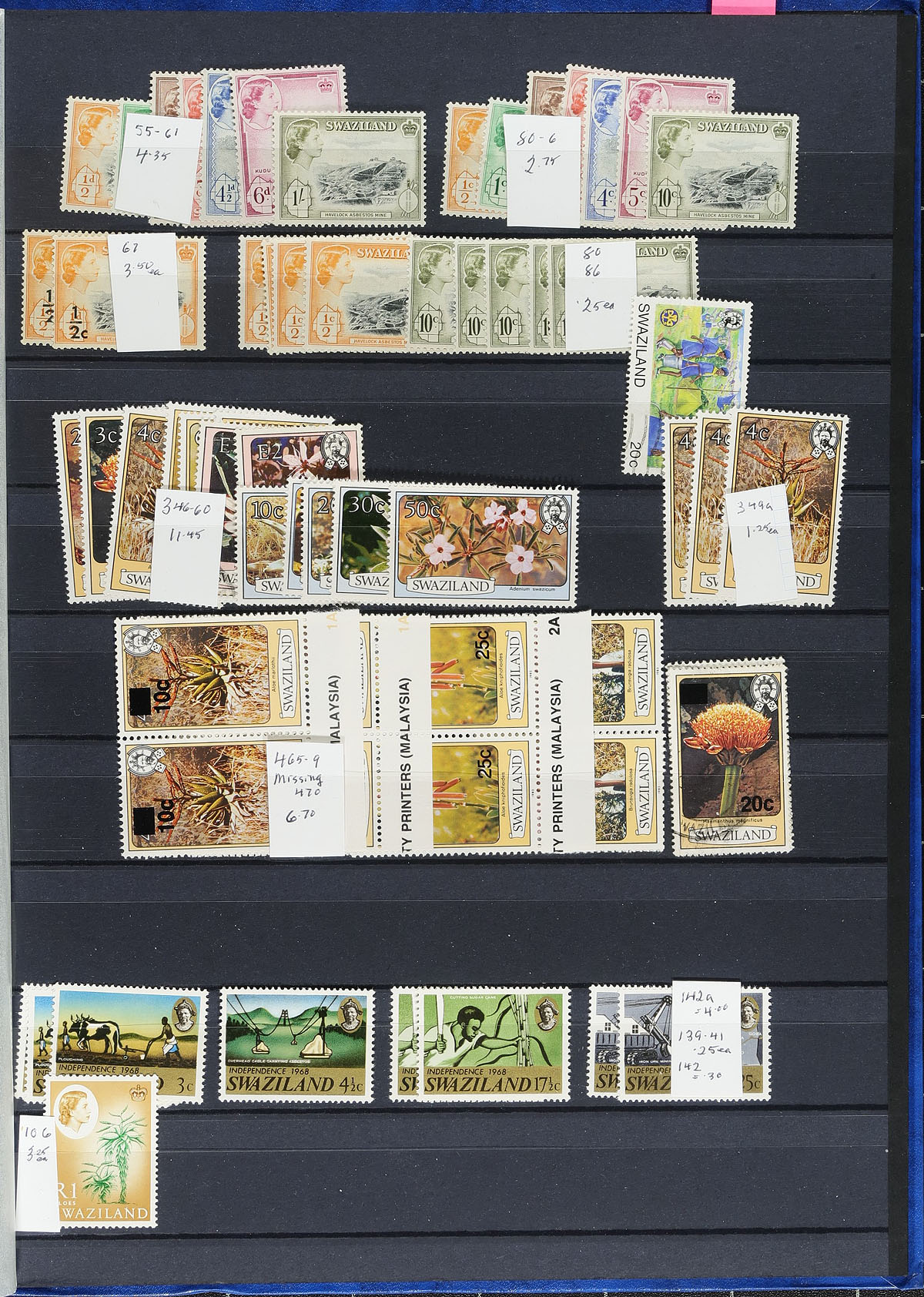 Neatly organized worldwide dealer stock in 6 binders, containing many hundreds of stamps including mint and used singles, sets, partial sets, and souvenir sheets in 6 stockbooks. The lot consists of 3 stockbooks with material ranging from N to Z countries, along with 3 stockbooks containing primarily European countries. Each stockbook includes owner's identification and catalogue pricing, noting the majority of singles and sets ranging from $1 to $5 each, with some sets cataloguing $15 and up. We note better representation from European and British Commonwealth countries. A nice opportunity for collectors (especially thematic and topical), and dealers look for already identified material. Our photos show a sampling. Estimate =