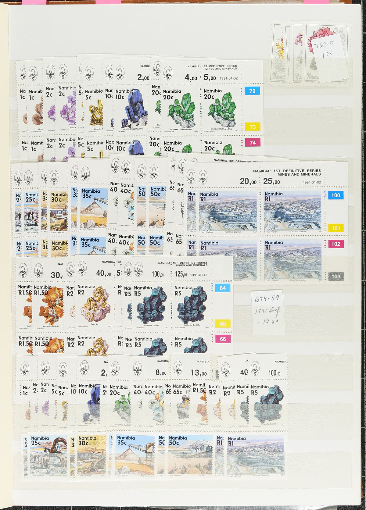 Neatly organized worldwide dealer stock in 6 binders, containing many hundreds of stamps including mint and used singles, sets, partial sets, and souvenir sheets in 6 stockbooks. The lot consists of 3 stockbooks with material ranging from N to Z countries, along with 3 stockbooks containing primarily European countries. Each stockbook includes owner's identification and catalogue pricing, noting the majority of singles and sets ranging from $1 to $5 each, with some sets cataloguing $15 and up. We note better representation from European and British Commonwealth countries. A nice opportunity for collectors (especially thematic and topical), and dealers look for already identified material. Our photos show a sampling. Estimate =