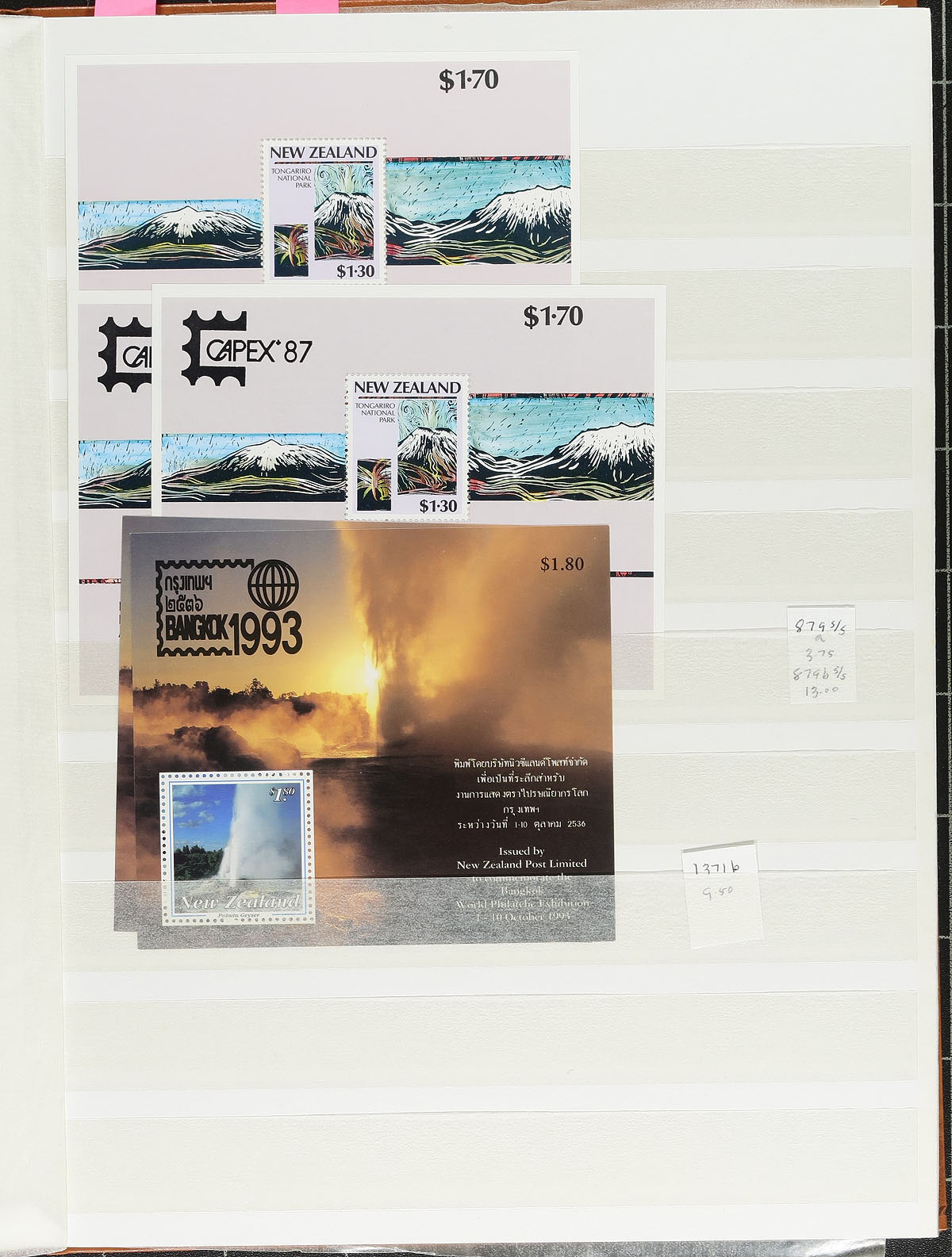 Neatly organized worldwide dealer stock in 6 binders, containing many hundreds of stamps including mint and used singles, sets, partial sets, and souvenir sheets in 6 stockbooks. The lot consists of 3 stockbooks with material ranging from N to Z countries, along with 3 stockbooks containing primarily European countries. Each stockbook includes owner's identification and catalogue pricing, noting the majority of singles and sets ranging from $1 to $5 each, with some sets cataloguing $15 and up. We note better representation from European and British Commonwealth countries. A nice opportunity for collectors (especially thematic and topical), and dealers look for already identified material. Our photos show a sampling. Estimate =