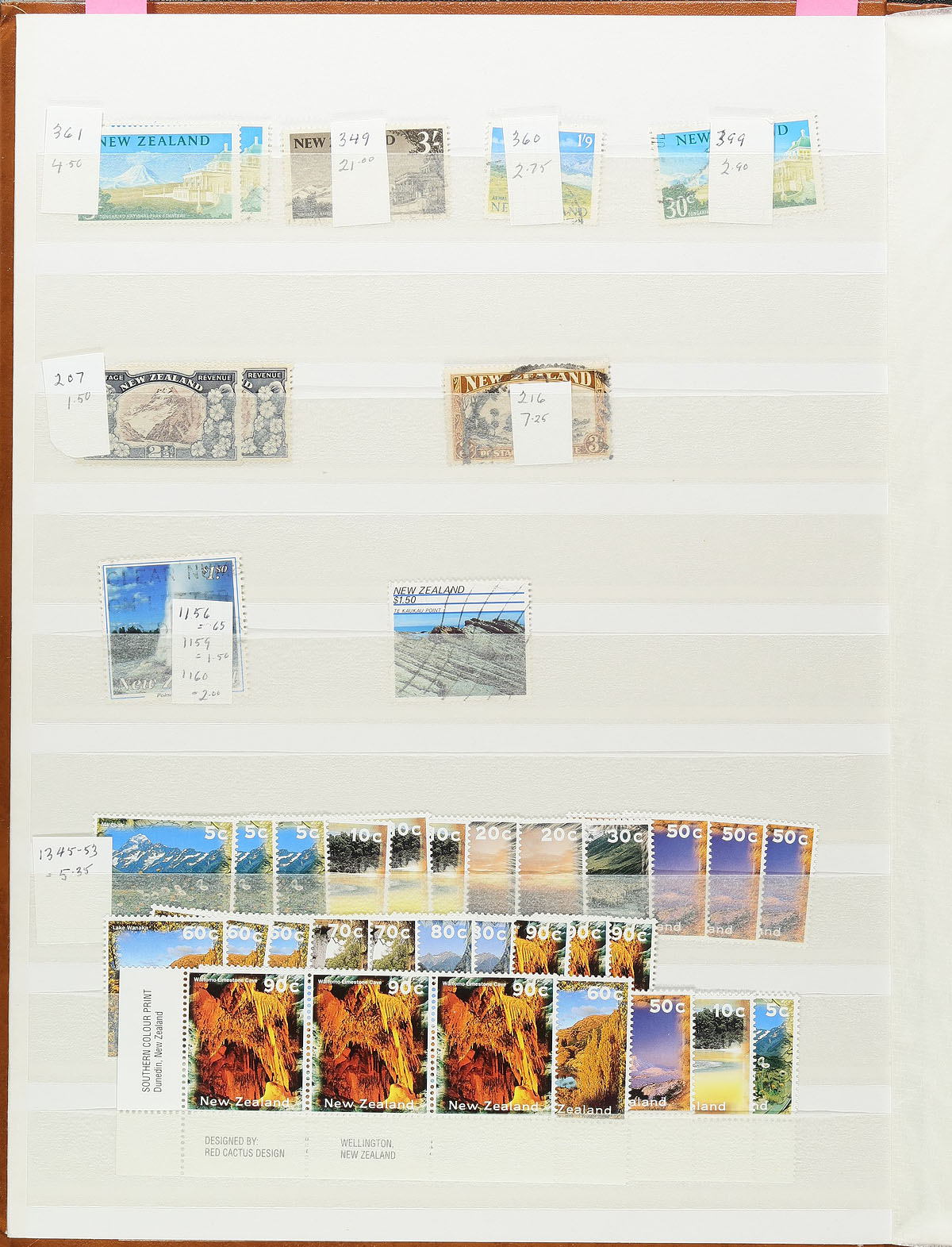 Neatly organized worldwide dealer stock in 6 binders, containing many hundreds of stamps including mint and used singles, sets, partial sets, and souvenir sheets in 6 stockbooks. The lot consists of 3 stockbooks with material ranging from N to Z countries, along with 3 stockbooks containing primarily European countries. Each stockbook includes owner's identification and catalogue pricing, noting the majority of singles and sets ranging from $1 to $5 each, with some sets cataloguing $15 and up. We note better representation from European and British Commonwealth countries. A nice opportunity for collectors (especially thematic and topical), and dealers look for already identified material. Our photos show a sampling. Estimate =