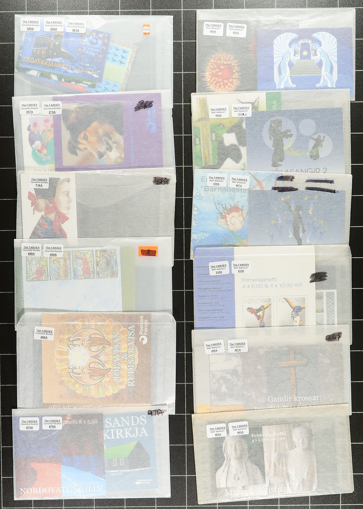 Group of 123 Faroe Islands booklets, all in well described glassines (generally 2 to 3 per glassine), ranging from 138A/716A. The lot essentially is in two halves with 62 different booklets being mint, and the other set of booklets having a variety of pictorial cancellations from Torshavn. A lovely clean group from this popular collecting region. Estimate =