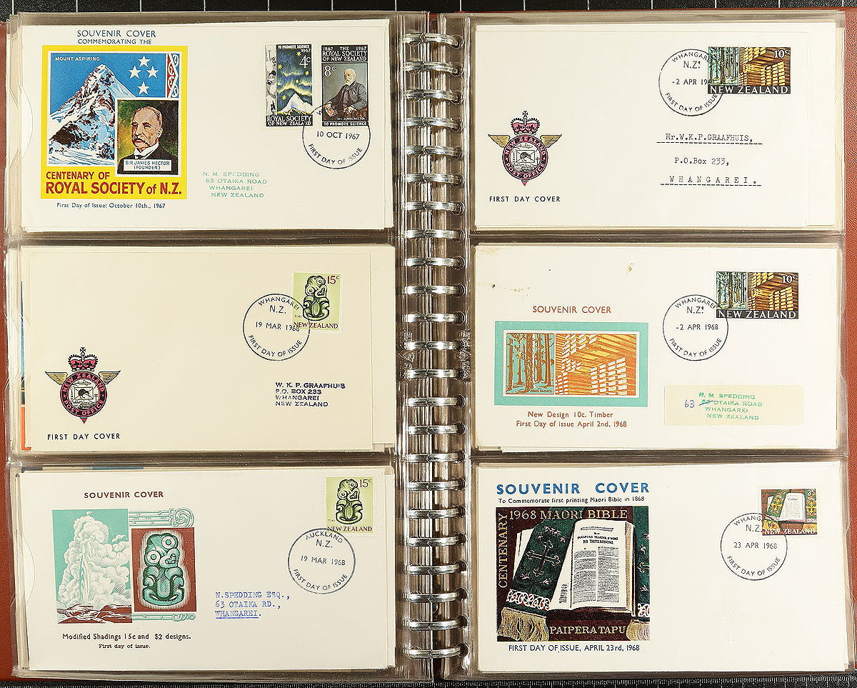 Nice collection of 186 first day covers, 1938-1979, mostly with privately added cachets and the majority are addressed. Includes a number of health issues with a number of "Camp" cancels. These private cachets are increasingly being documented and catalogued, some of which are surprisingly desirable. A very clean, lightly duplicated, group which are hosted in a pair of first day cover albums. Estimate =