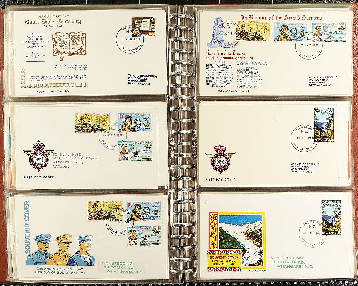Nice collection of 186 first day covers, 1938-1979, mostly with privately added cachets and the majority are addressed. Includes a number of health issues with a number of "Camp" cancels. These private cachets are increasingly being documented and catalogued, some of which are surprisingly desirable. A very clean, lightly duplicated, group which are hosted in a pair of first day cover albums. Estimate =